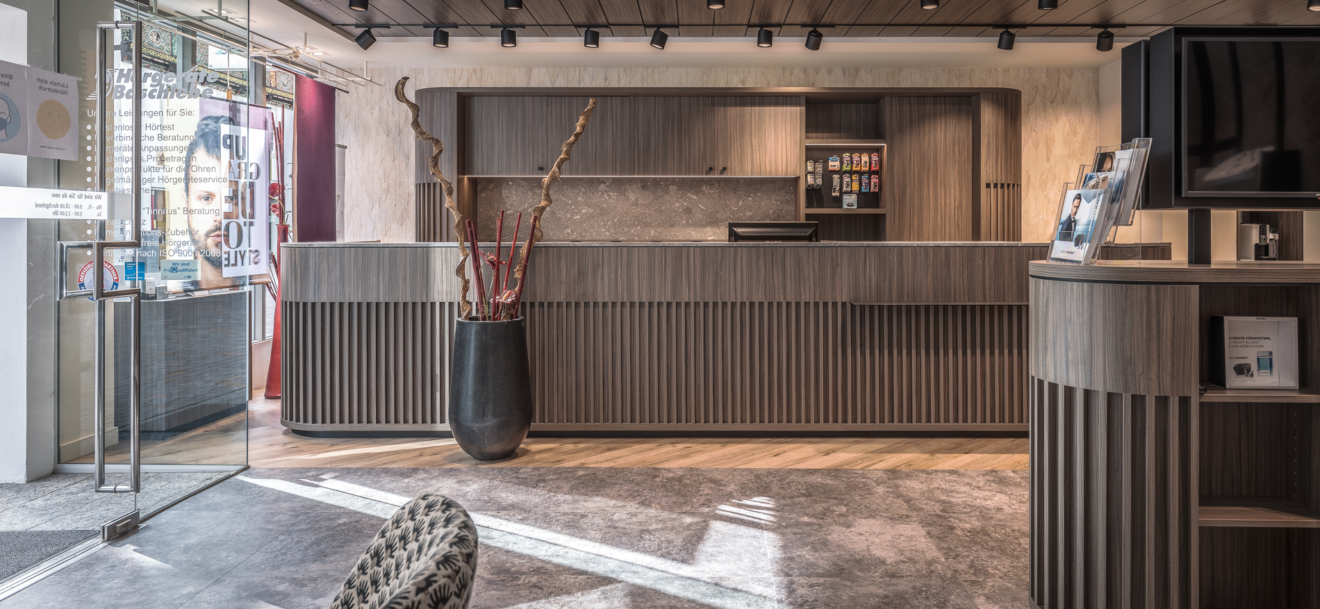 De winkel van Baschlede Horen werd ontworpen en gerealiseerd in zeer kort tijdsbestek midden in de Coronatijd. Bashlebe heeft zich gespecialiseerd in mensen met hoorproblemen.
