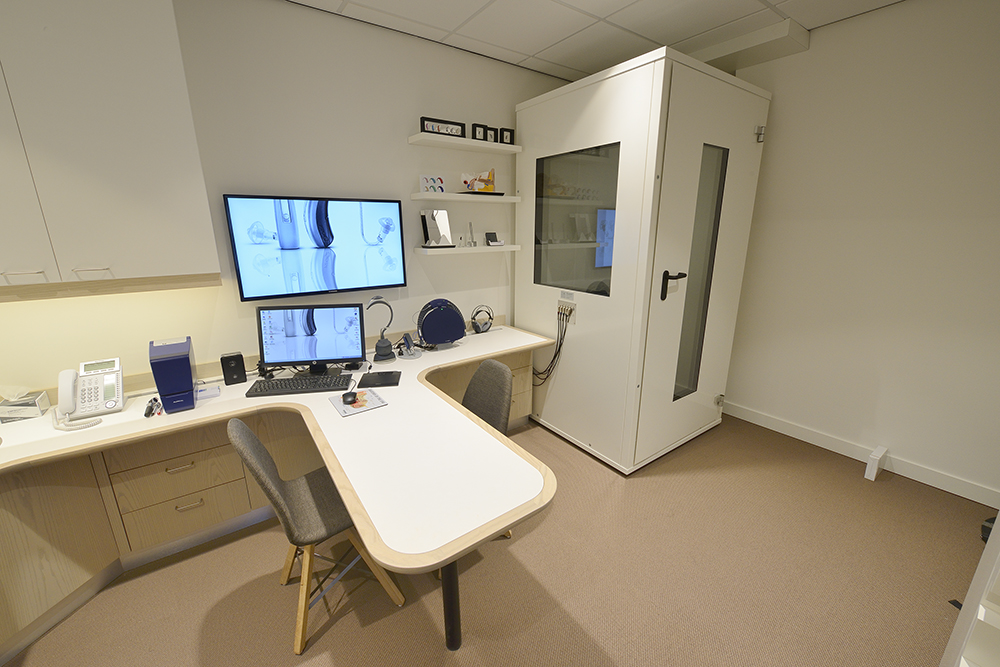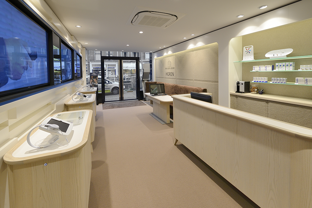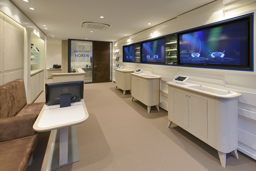 Kernwoorden: design audicien, design hoorwinkel, interieur audicien, interieur hoorwinkel, ontwerp audicien, presentatie audicien