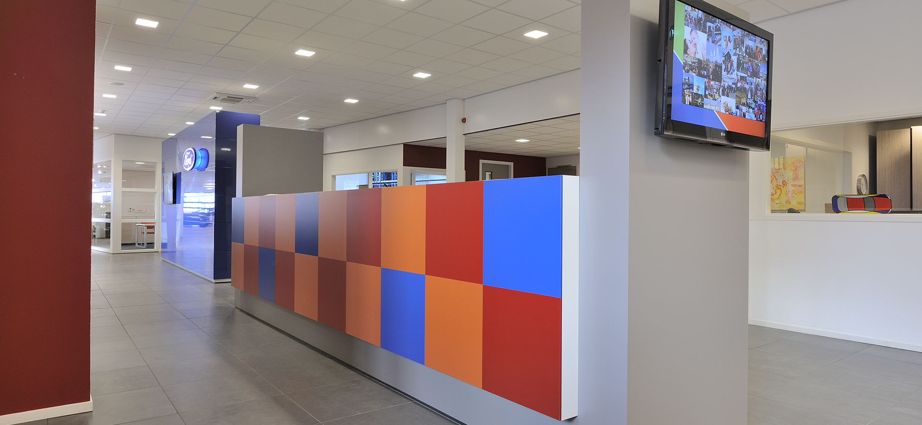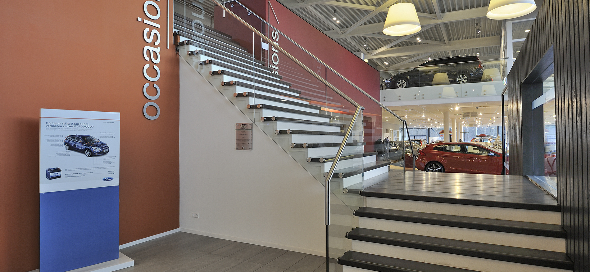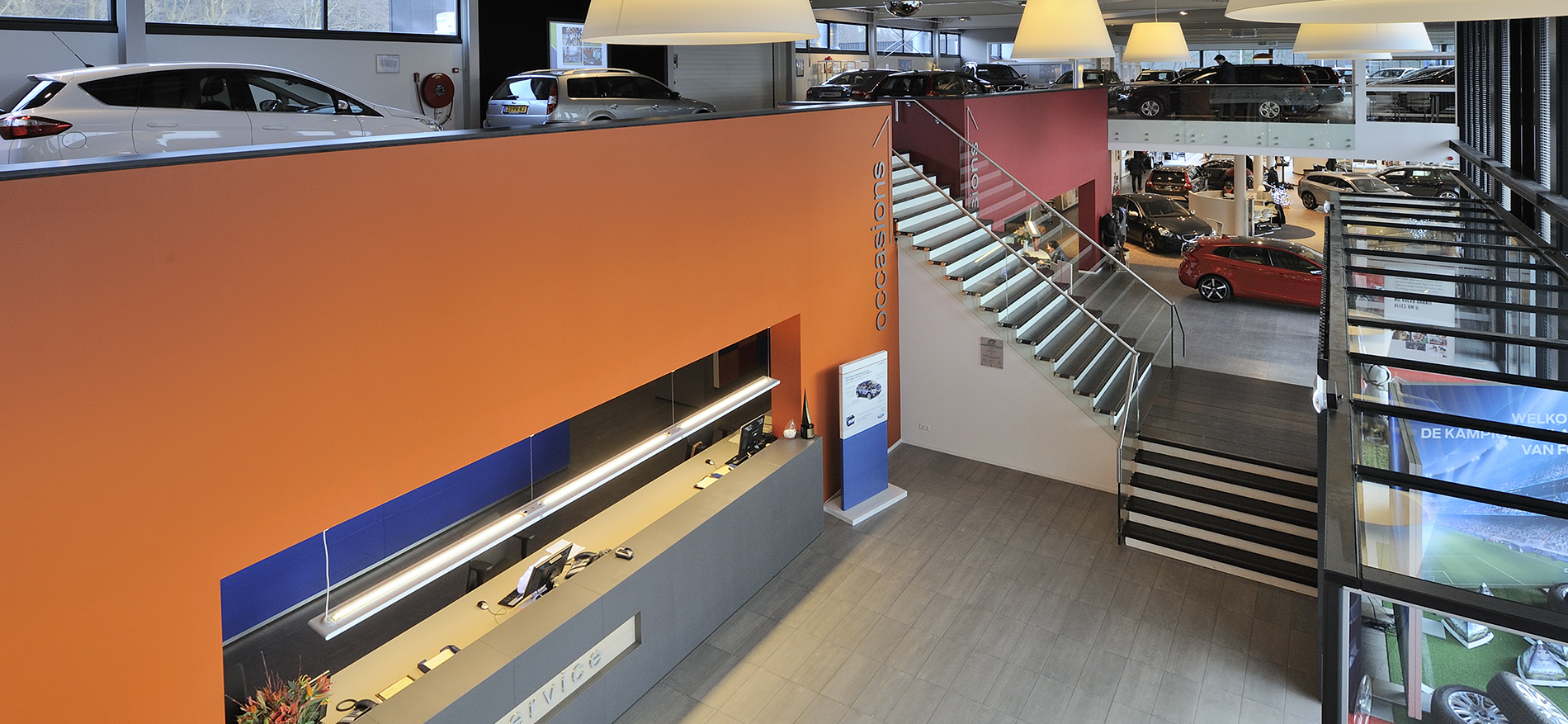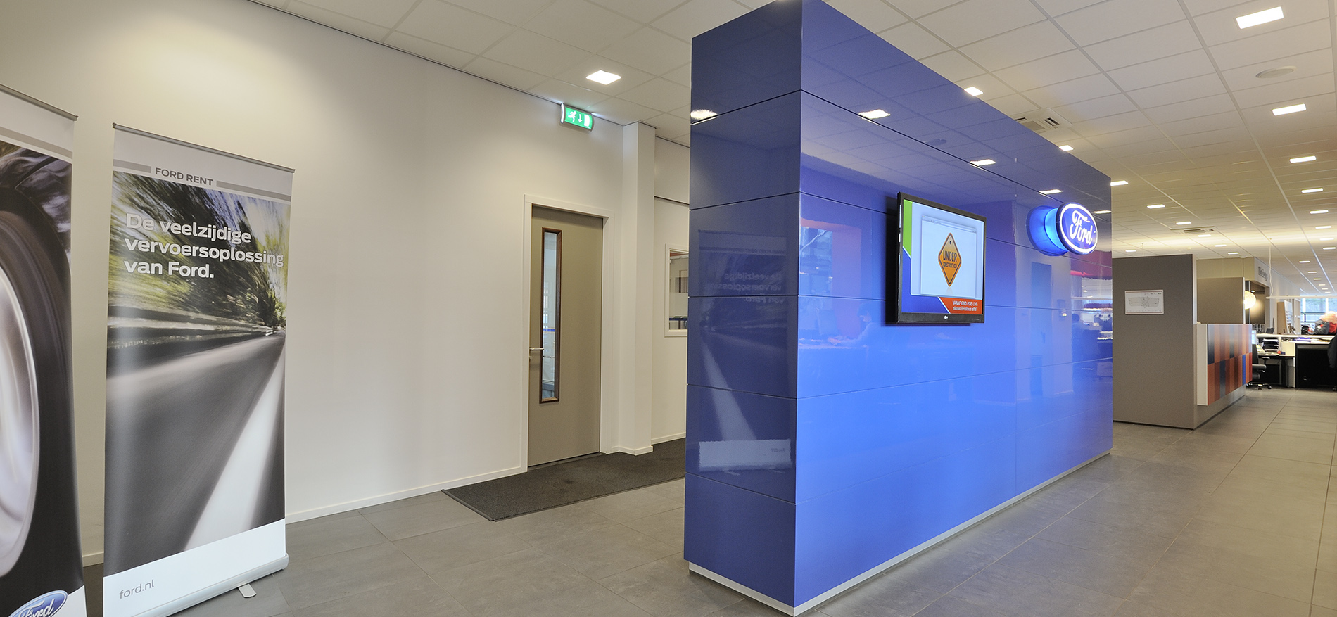 Werkzaamheden >> WSB Interieurbouw verzorgde de Showroom inrichting voor Ford Broekhuis Autogroep in Zeist. WSB is sterk in retail design en Interieurbouw. Hoe creeer ik bij mijn klanten een gevoel van welbevinden? Hoe zorg ik voor verblijfsduurverlengingen? Hoe creeer ik merkbeleving? Het zit WSB in de Genen om zich bij het ontwerp en de uitvoering van Auto Showrooms te concentreren op commercieel retail design van het DNA profiel van dealers van automerken.