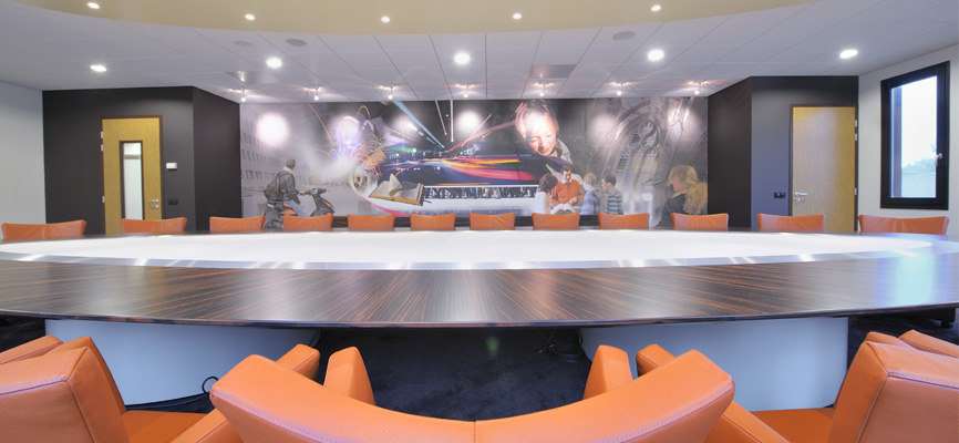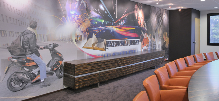 Interieur vergaderruimte Hoornbeeck college: Vergaderen is concentreren, is creatief zijn in het bedenken van oplossing, is consensus maken, is knopen doorhakken.