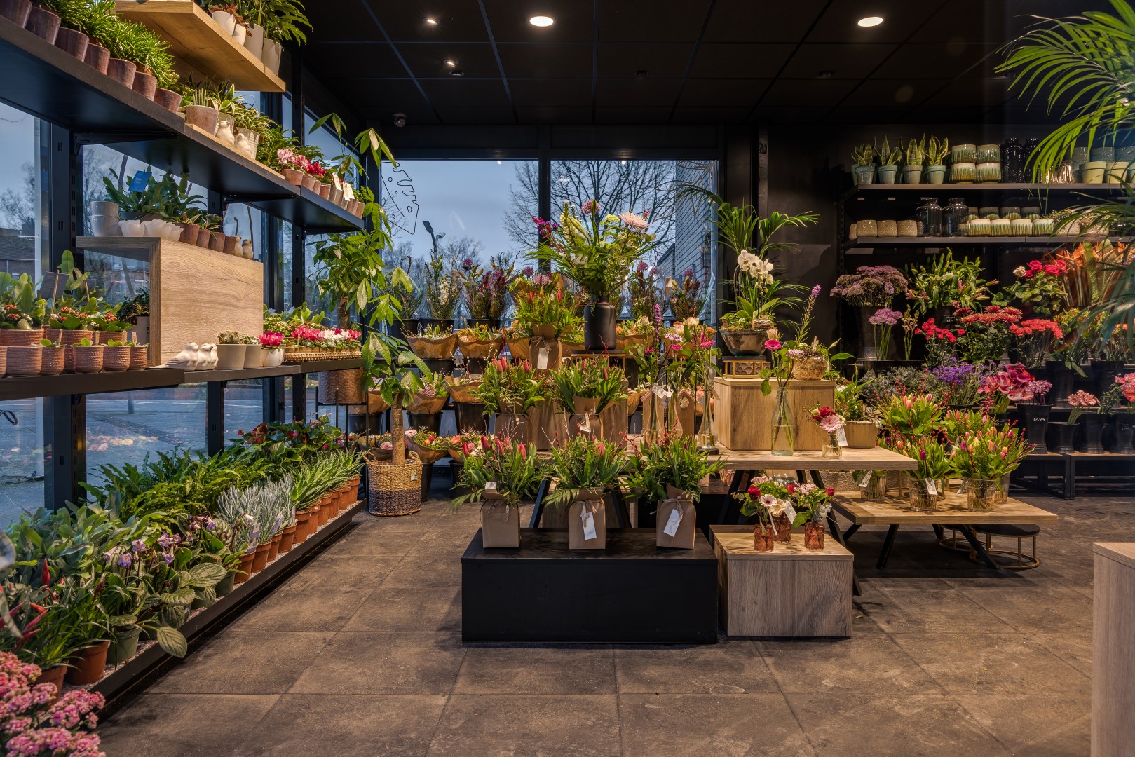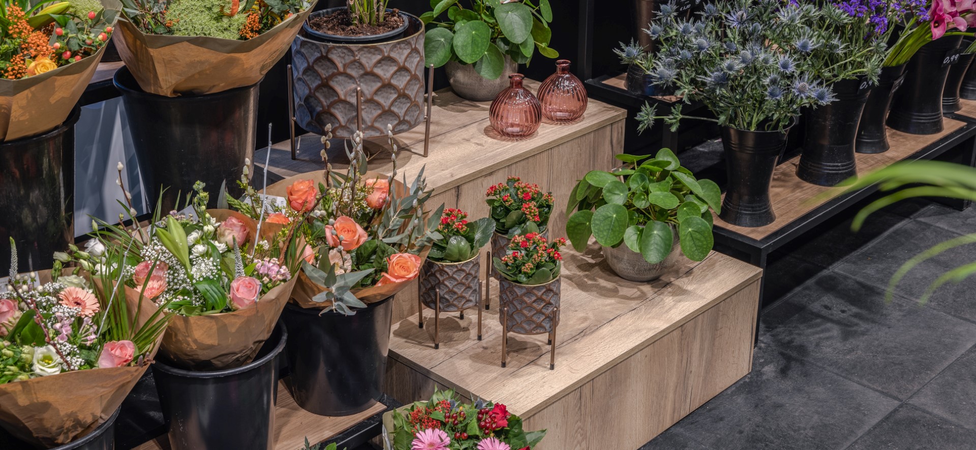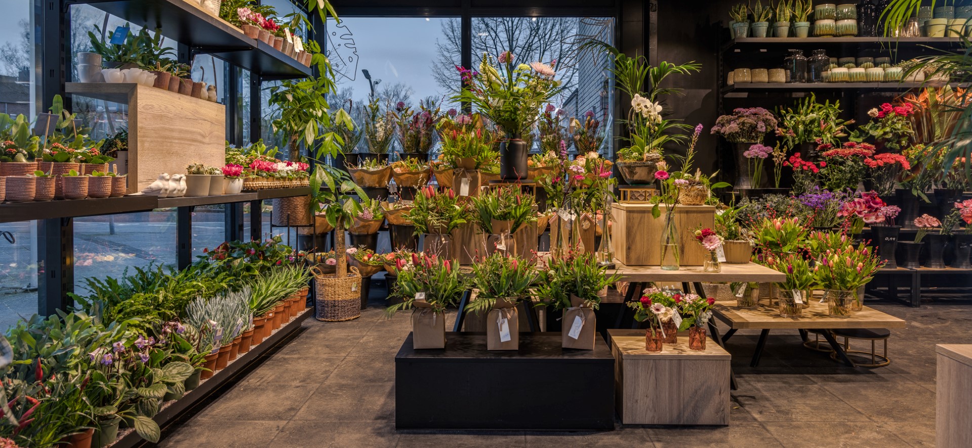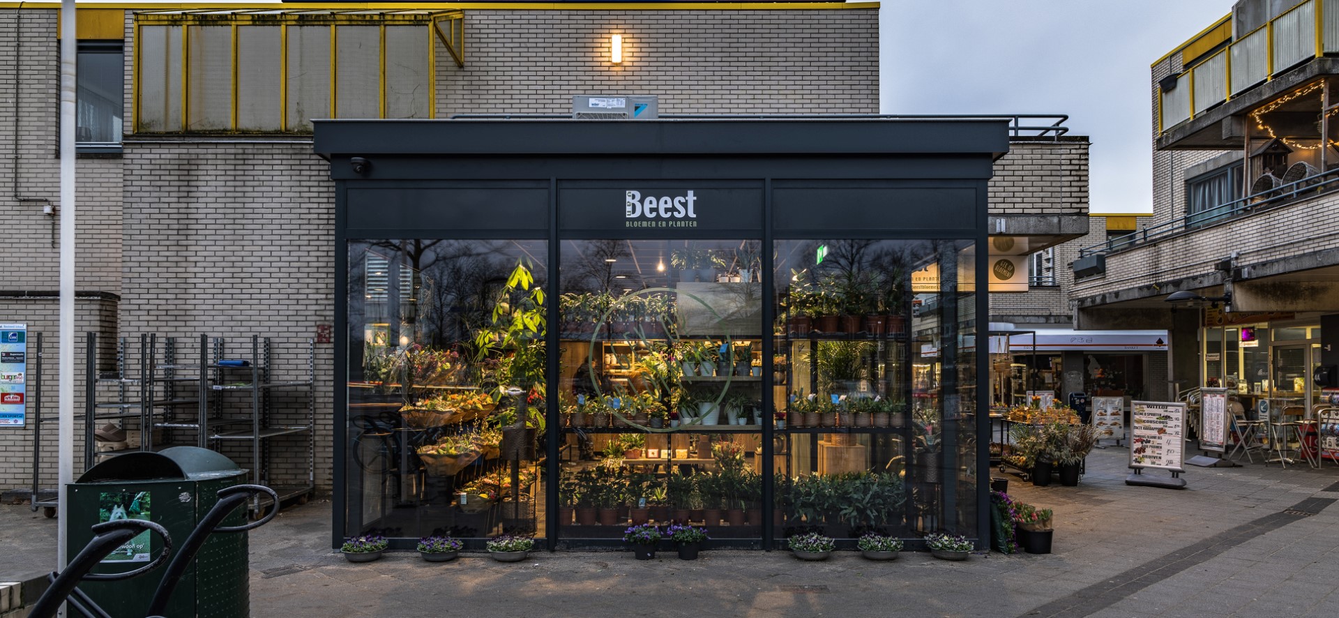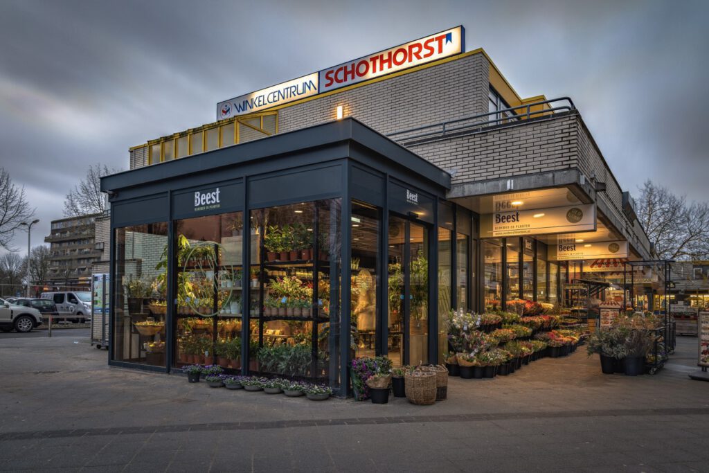 Wat me nu ook weer opvalt in de winkel in Amersfoort, is dat er sprake is van een heel enthousiast en toegewijd team. Er heerste ook wel een euforische stemming direct bij de oplevering van de winkel, want de winkel was door de uitbouw en inrichting zoveel beter geworden dan in de oude situatie. Het plan is zodanig ontworpen dat ze nu ook veel meer zichtbaar zijn vanaf het plein. Geweldig gaaf vind ik het om te zien hoe er sprake is van een dubbele aantrekkelijke etalagefunctie: enerzijds echt direct gepresenteerd achter het glas, anderzijds kijk je ook goed de winkel in. We wensen team van Beest weer alle succes toe met de nieuwe winkelinrichting voor deze prachtige bloemenzaak!”