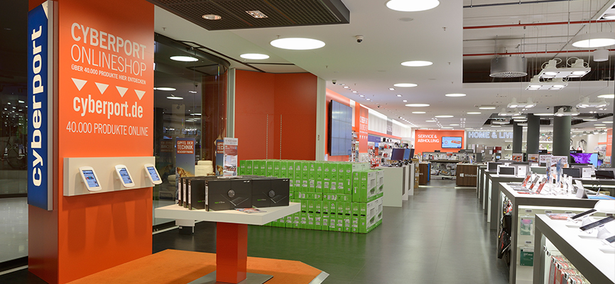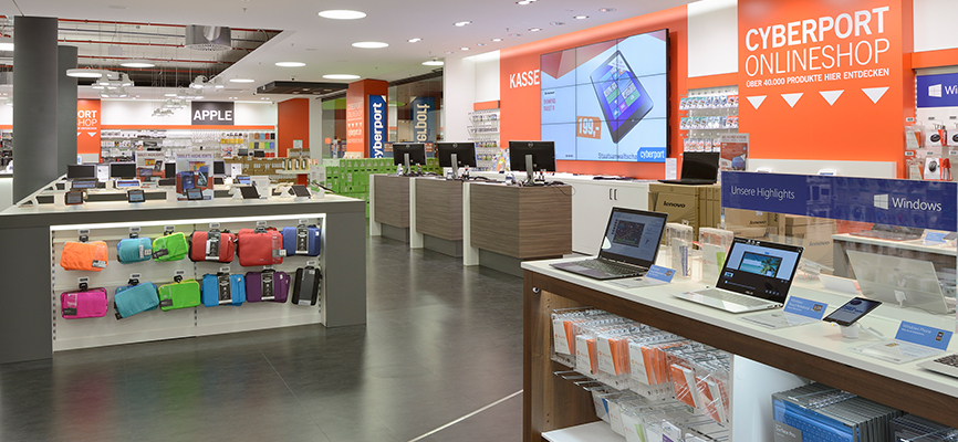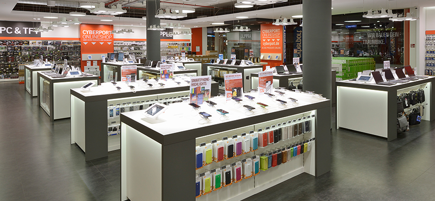 WSB Interieurbouw heeft het nieuwe retail concept van het Duitse Cyberport ontwikkeld en gerealiseerd. In Munchen is dit concept door WSB gebouwd in korte tijd en volgens afspraak tegen scherpe prijzen met inbreng van veel kennis en creativiteit. Kortom onze Duitse opdrachtgevers zijn zeer tevreden over de samenwerking met WSB.