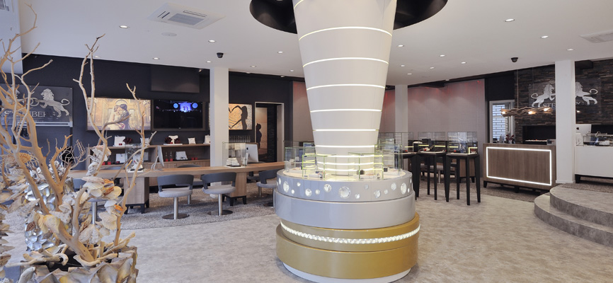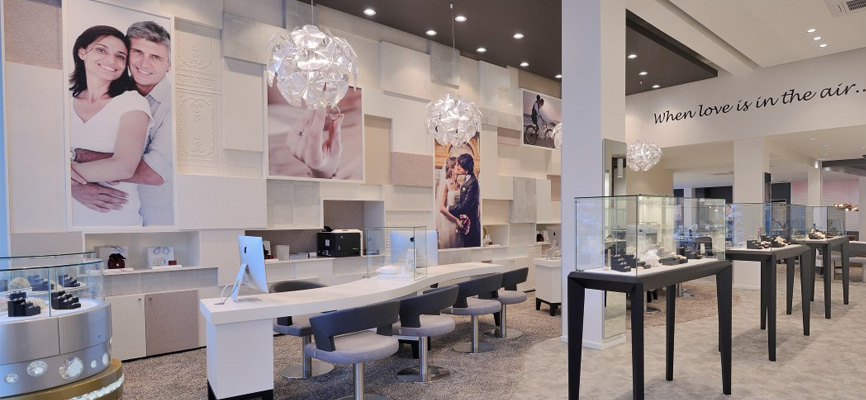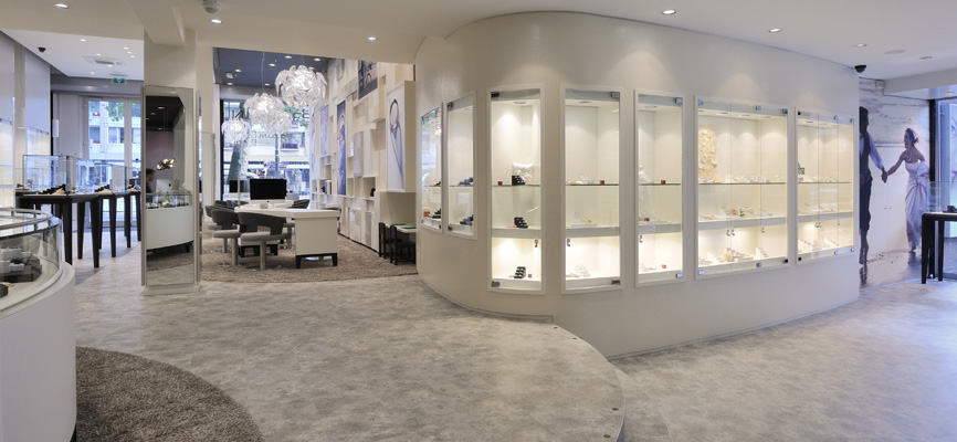 Inspirerende ontwerpen en turnkey realisaties van winkels en shop in shops voor trouwringen.