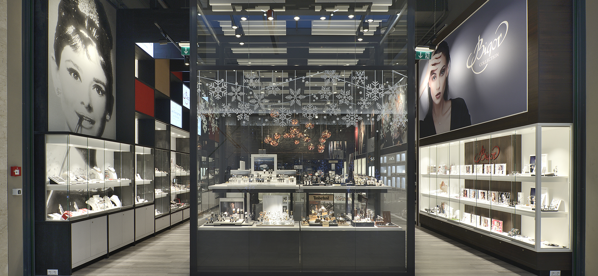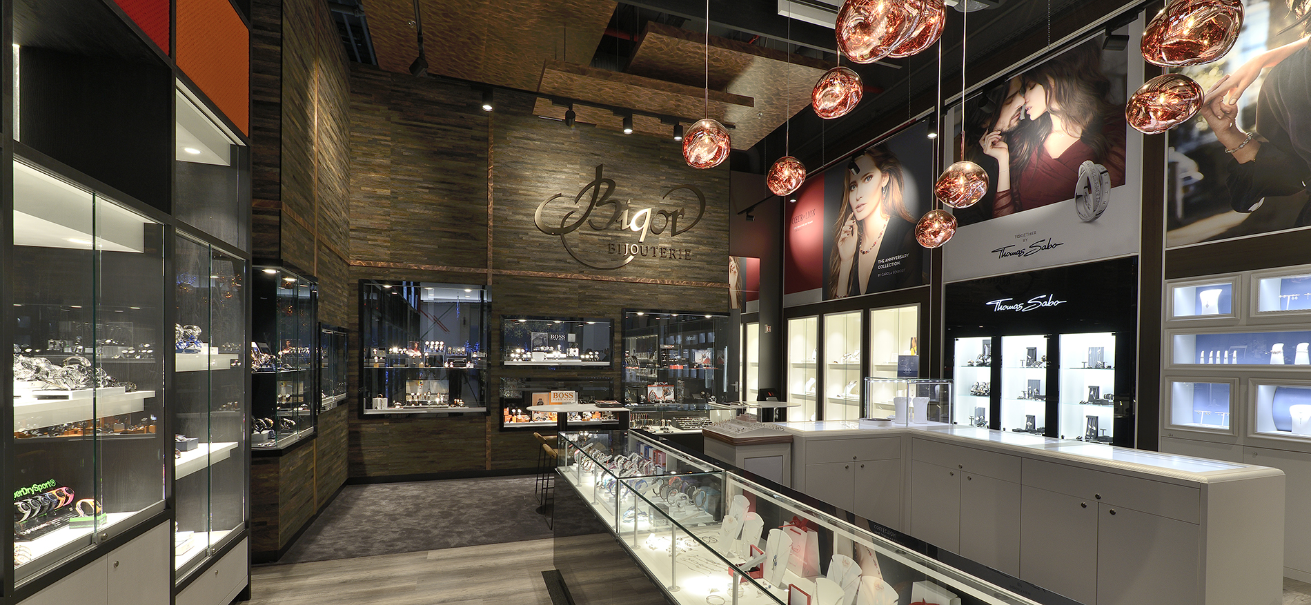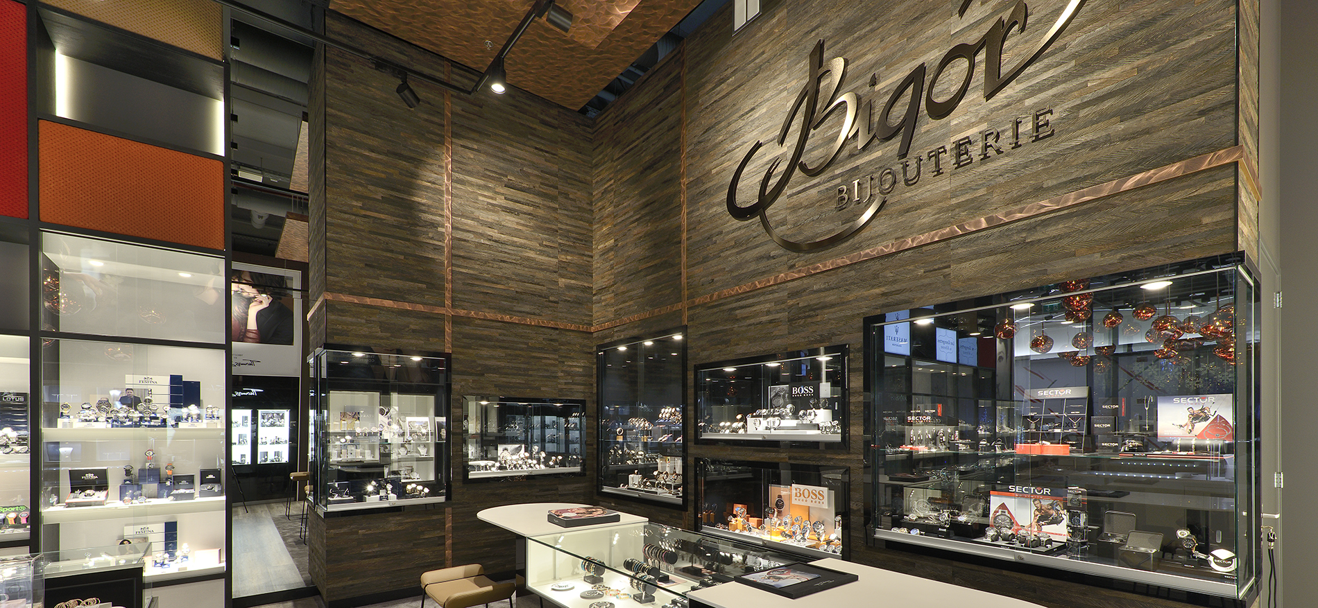 Differdange: In het hagelnieuwe winkelcentrum Opkorn te Differdange staat het huis Bigor met een oppervlakte van 135 m2 vol in de schijnwerpers te schitteren. Royale dubbele entree. Een zeer imposante hoogte van 5,5 meter dat is Bigor Differdange je kunt er niet omheen. Vrije wanden, balie in het centrum de klant krijgt alle ruimte om de collecties te bewonderen.
