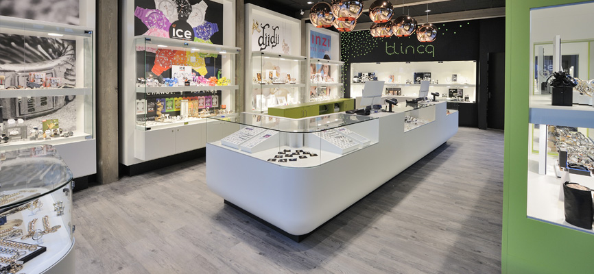 Blinq Juwelier in Pijnacker is een trendwinkel met moderne toepassingen van dynamische led-verlichting, donkere plafonds en grote vitrines met veel aandacht voor merkbeleving gericht op het jongere publiek. Ruud van Heemskerk is uiterst tevreden met de nieuwe winkel welke is vormgegeven door WSB Interieurbouw.