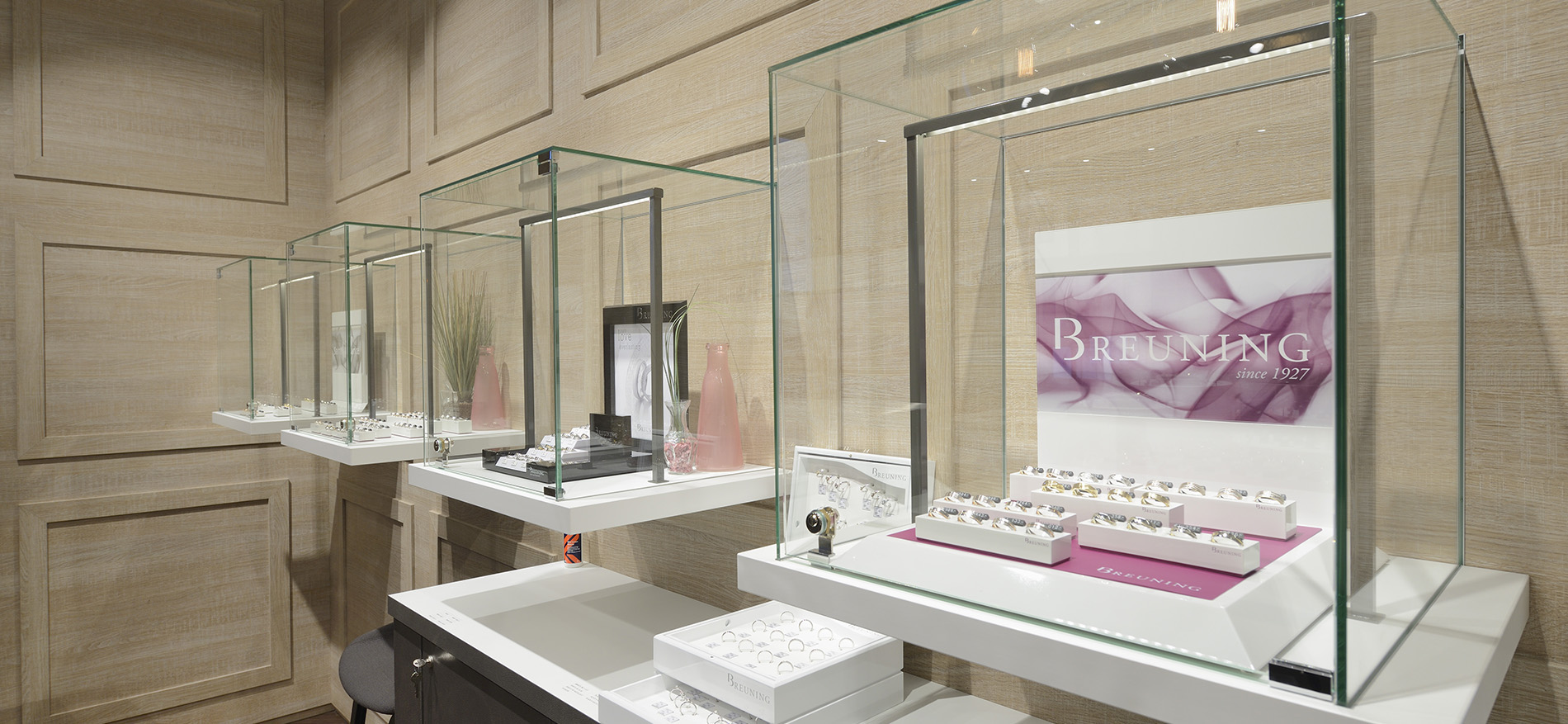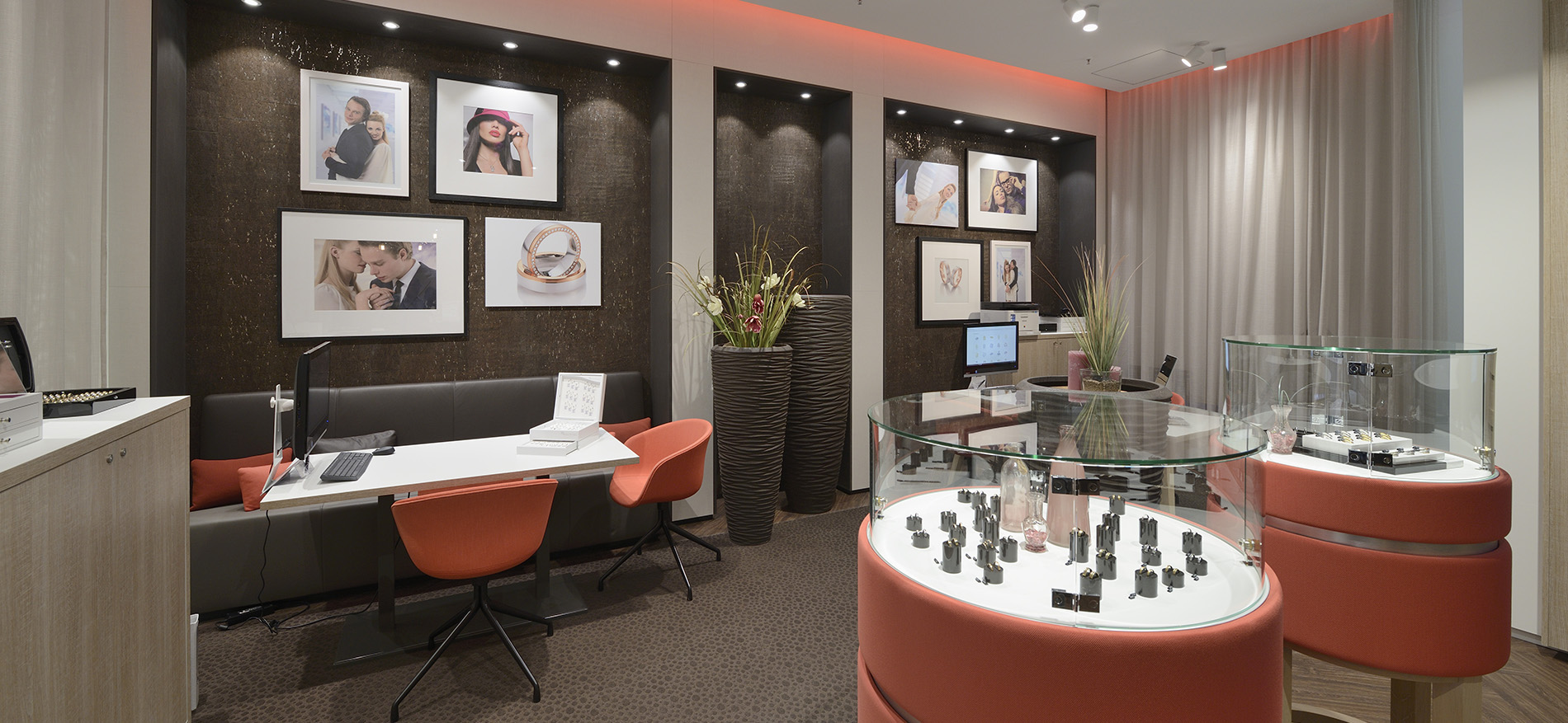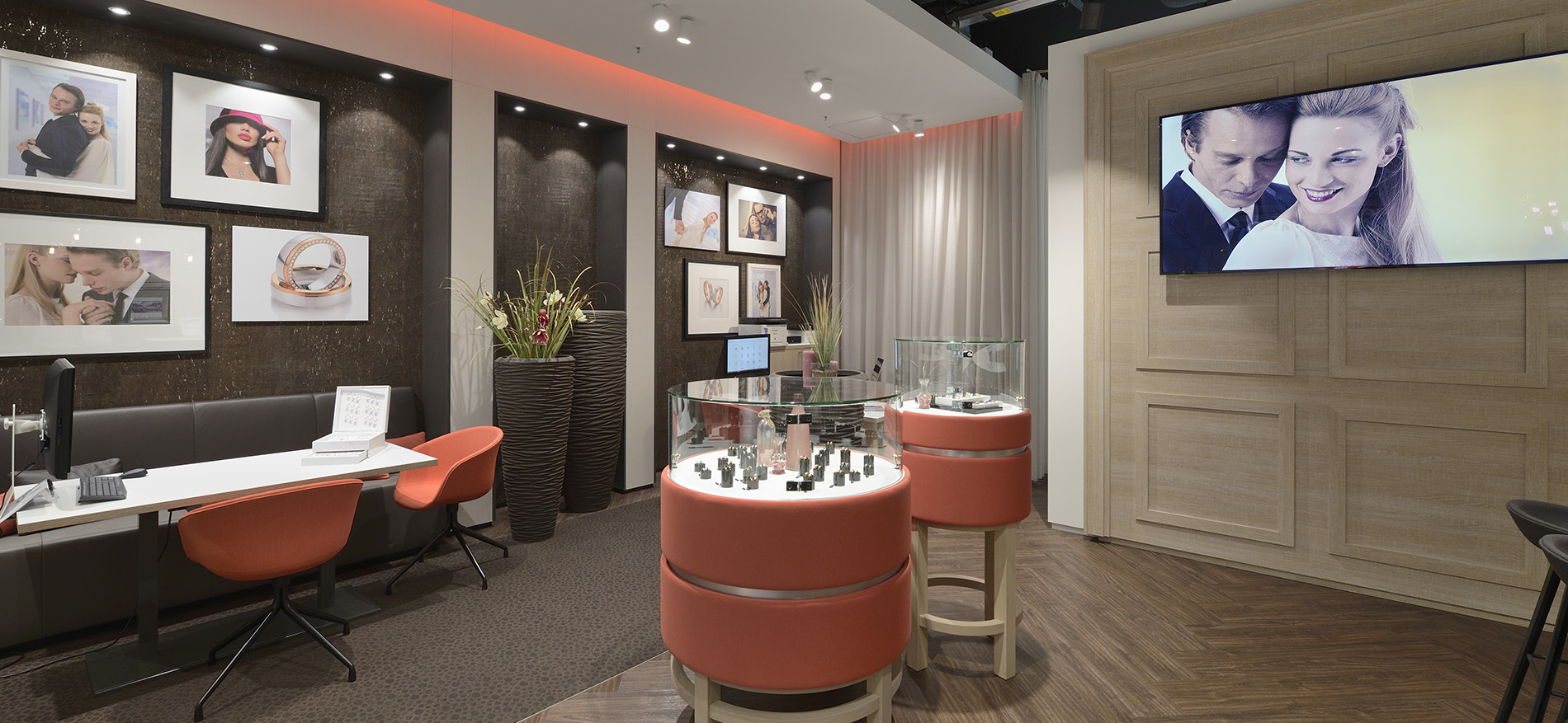 In het Stuttgarter Shoppingcentre Milaneo heeft trouwringenspecialist Breuning een trouwringen lounge geopend. In een ontspannen atmosfeer worden hier wens- en trouwringen uitgezocht. WSB tekende en realiseerde het winkelconcept.