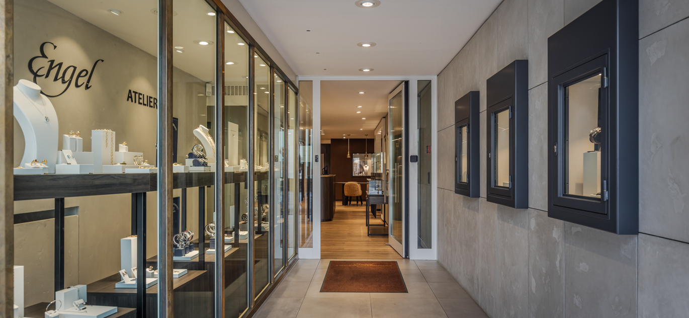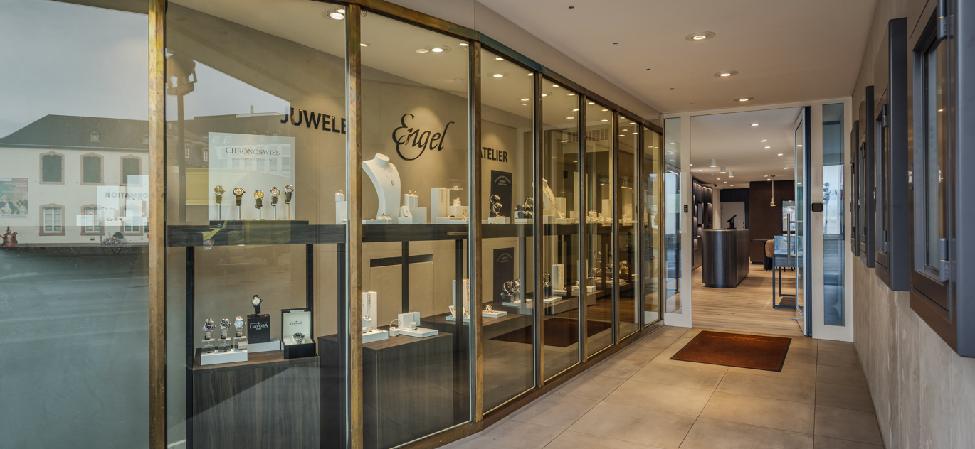 Nils Engel, de zoon van Patrick en Stephanie Engel, leerde het vak van goudsmid en ging na het behalen van zijn masterdiploma terug naar zijn thuis. De juwelierswinkel van zijn ouders bevindt zich in Trier, direct gelegen aan de Porta Nigra. Samen besloten Nils en zijn ouders om het bedrijf klaar te maken voor de toekomst. WSB kreeg de opdracht voor ontwerp, planning en uitvoering van een nieuwe inrichting van de juwelier. Voor een elegant winkelinterieur zou het bestaande etalagesysteem een nieuwe presentatie moeten krijgen, waardoor het geheel wat luchtiger moet laten ogen. Soms is minder meer!
