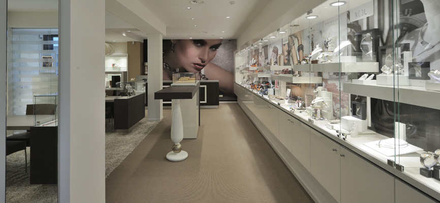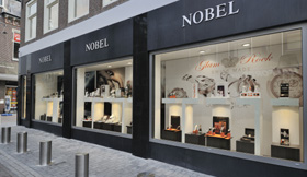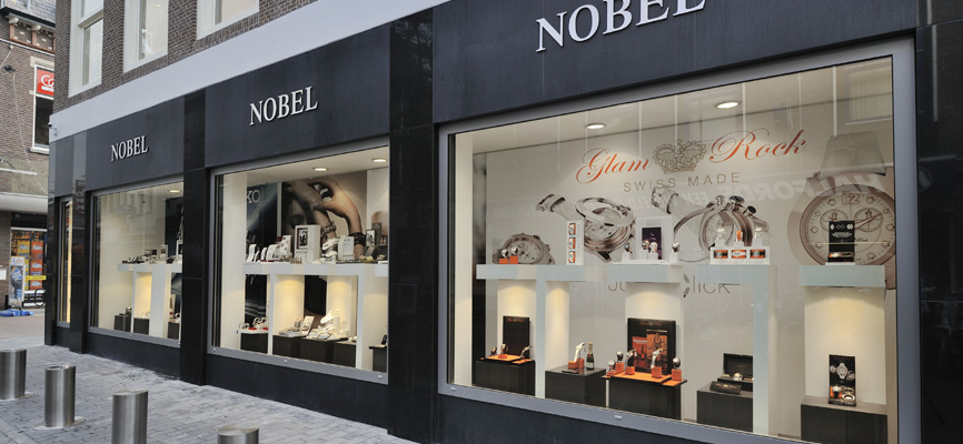Juwelier Nobel in Woerden: Retail design en turn key realisatie door WSB Interieurbouw. De verhuizing van Juwelier Nobel is een strategisch goede keuze gebleken. Het complete ontwerp inclusief puiaanpassingen en zelf de schilderijen in de winkel zijn van de hand van WSB Retaildesign.