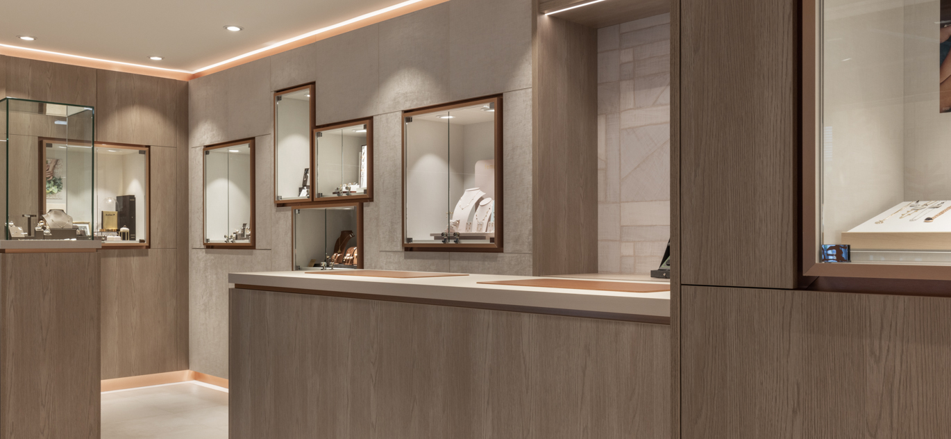 Rick Blankenstijn van WSBdesign.com: “De oude winkel had enigszins sobere tinten, er werd niet veel geëtaleerd. Ons winkelontwerp is ingestoken op mooie lichte en edele stoffen. De houttint die is uitgekozen door onze interieurarchitecten in combinatie met het warme rosé goud geeft deze winkel een zachte en warme uitstraling.