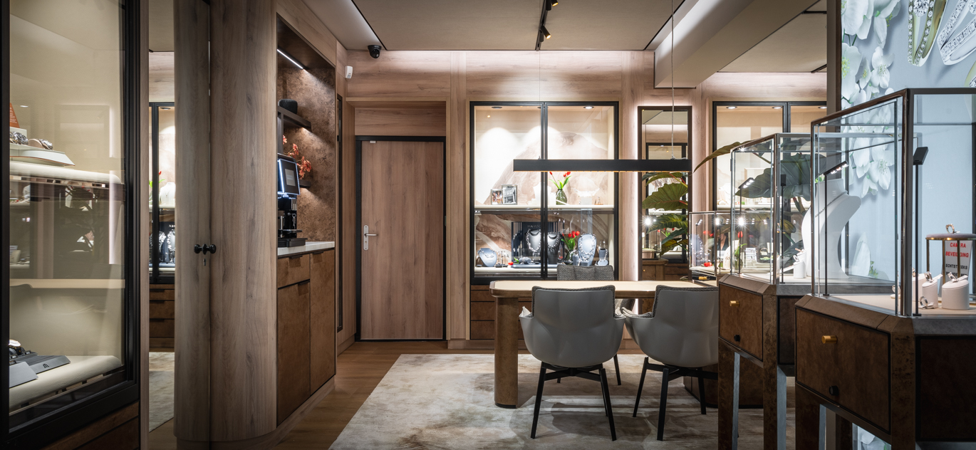 WSB is een familiebedrijf sinds 1958 en heeft ruime ervaring in het ontwerpen en realiseren van winkels voor juweliers. U heeft één aanspreekpunt voor strategie, design, projectmanagement en productie. Ons team van 60 eigen vakmensen wordt gekenmerkt door passie, zorg en vakmanschap. Bij het ontwikkelen van winkelinrichting juwelier stellen wij de juiste vragen: Hoe zorgt u ervoor dat uw relaties zich de omgeving herinneren? Wat is commercieel, mooi en praktisch? Bel ons voor een vrijblijvende brainstormsessie. Wij denken graag met u mee in het verbouwingsproces.