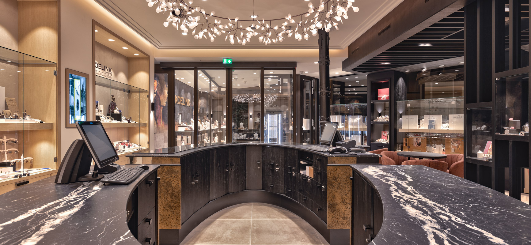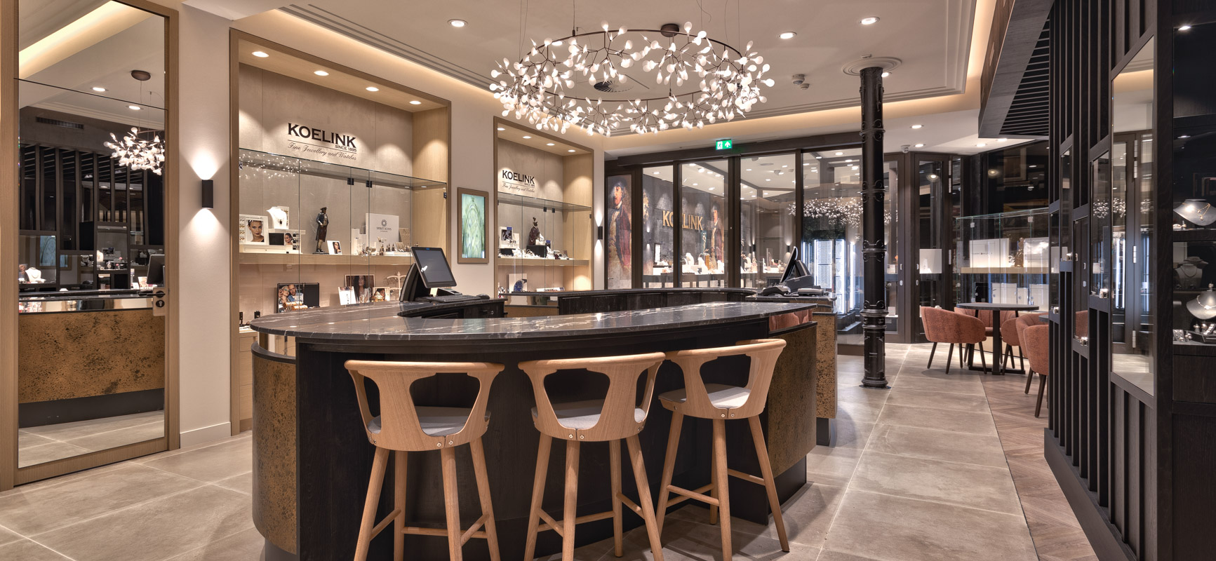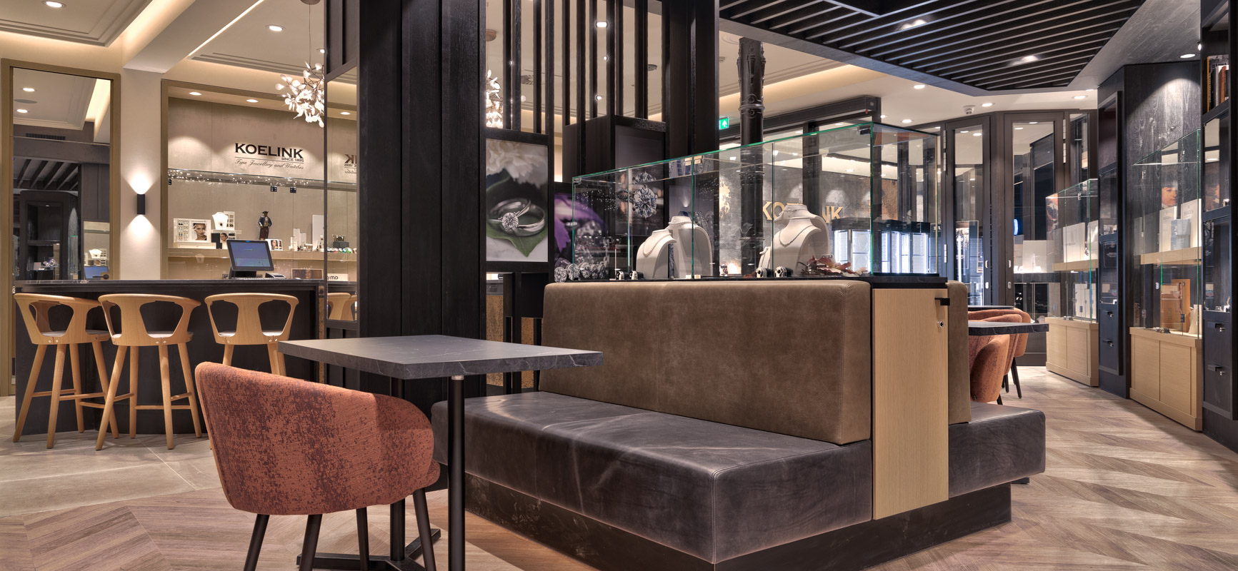 Koelink Juweliers is een leidende juwelier in Oost-Nederland. In het nieuwe luxueuze winkelinterieur voor de juwelier zijn onder andere marmer en hout verwerkt. De winkel had de kenmerkende uitstraling van Henk Smit, een winkel met veel natuursteen. In het nieuwe ontwerp is gefocust op meer klant in de winkel, waar het doorwandelen vanuit de etalage de winkel in, een belangrijke verbetering heeft gebracht. In de winkel is een sfeer gecreëerd van welbevinden.