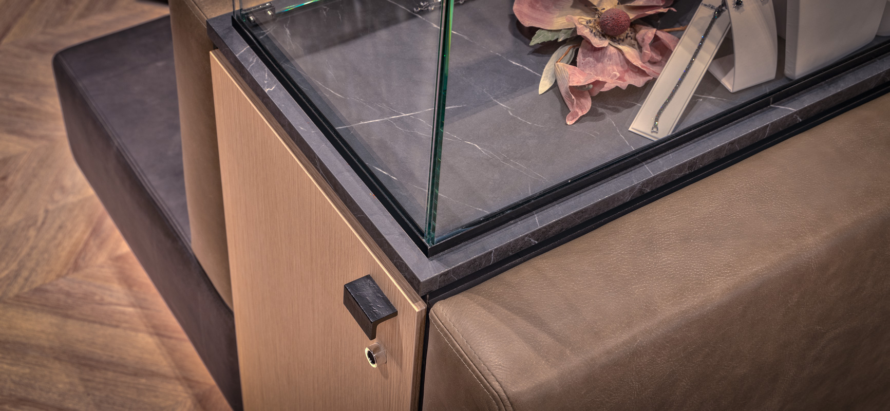 In het hart van de winkel is een verkoopeiland gecreëerd waar veel klanten tegelijk geholpen kunnen worden. De wandpresentaties komen daardoor tot hun volle recht. Daarnaast kent de winkel een intieme verkoophoek met warme sfeer.