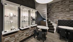 Pieter Jacobs is een onderscheidende winkel in een historische pand van 17 m2! De sfeer is subliem geworden met dank aan ons retail design. Het spuitwerk is afwisselend gebroken wit en goudkleurig, de behangen en de lamp hebben een hoge aaibaarheidsfactor. Alles is geoptimaliseerd op de vierkante millimeter. Een commerciële design topper van de hand van WSB Interieurbouw! Proficiat.