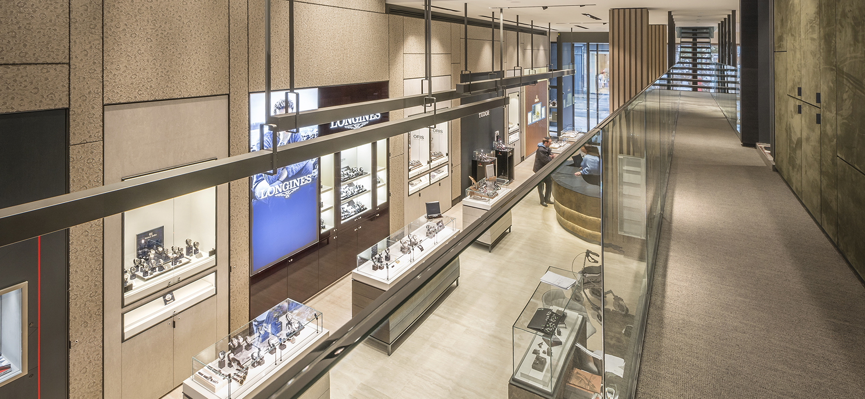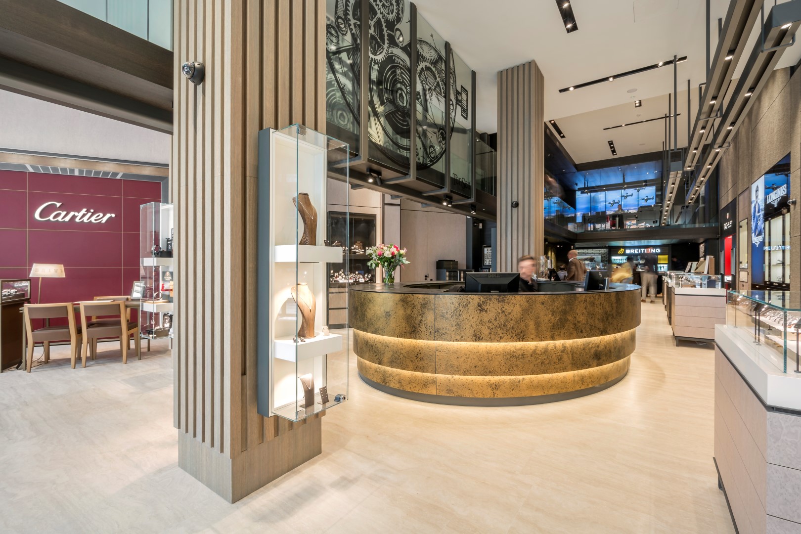 Het designteam van WSB mocht aan de slag nadat we de Pitch met 2 andere architecten hadden gewonnen. De opdracht luidde om in een drastisch veranderende markt een horlogepaleis te ontwerpen wat zijn weerga niet kent in Europa. Het huidige interieur was niet meer van deze tijd, en paste niet meer bij de uitstraling van de verschillende exclusieve merken die er worden verkocht. De strategie voor de metamorfose was om afscheid te nemen van 25 merken in het trendsegment en een duidelijke propositie te claimen door een aantal winkels samen te voegen in hetzelfde pand. In de winkel aan de Huidevetterstraat worden nu merken als Cartier, Omega, Tudor, Longines en Breitling verkocht.