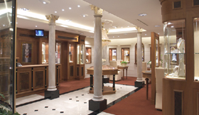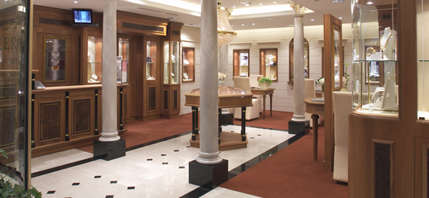 Juwelier Veerman is Huizen is klassiek, luxueus, stijlvol, tijdloos en onderscheidend vormgegeven door WSB Interieurbouw. Deze juwelierszaak kent tal van details. De materialisatie bestaat uit bladgoud details, massief noten, natuurstenen vloeren, gebogen glaswerk. Een tijdloze topper die toegesneden is op het Gooise publiek! Voor meer informatie over de ontwerpfilosofie en de gevolgde turn key project aanpak, bel WSB Interieurbouw.