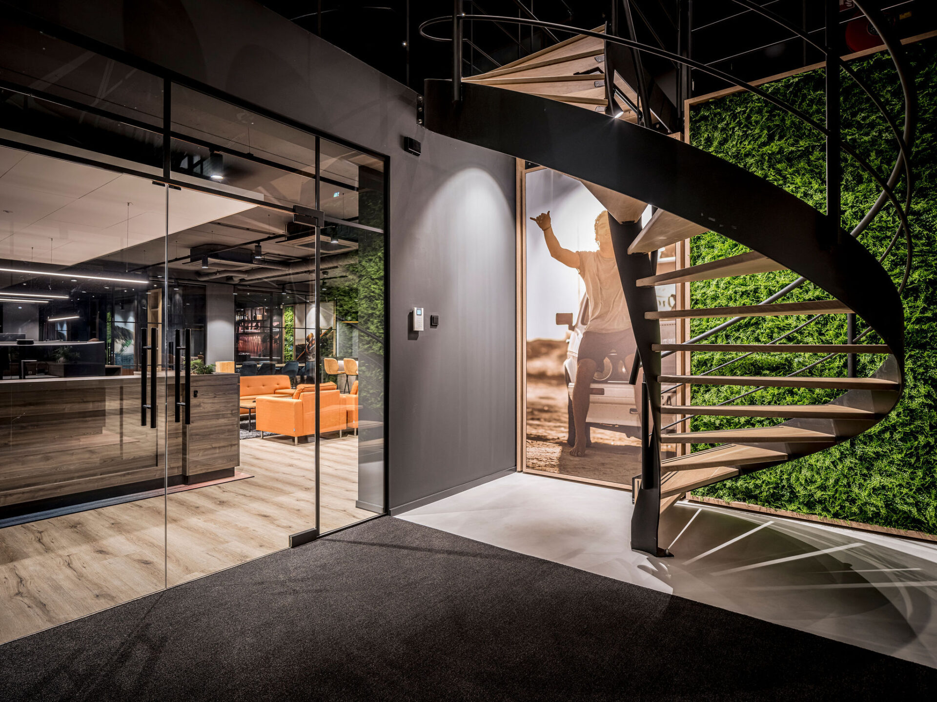 Equipe Trading is een leverancier en ontwikkelaar van vele kite-en surf producten. Het nieuwe pand is een fijne, moderne werkomgeving die zowel efficiënt als informeel is. Het ontwerp is warm en avontuurlijk, anders dan anders. Er is gebruik gemaakt van contrast tussen lichte en donkere elementen. Het frisse lichte hout, bureau’s met veel ruimte, de moswanden en de vele verlichte visuals geven een fantastisch contrast. Dit samen met de industriële basis van de inrichting van het kantoor.