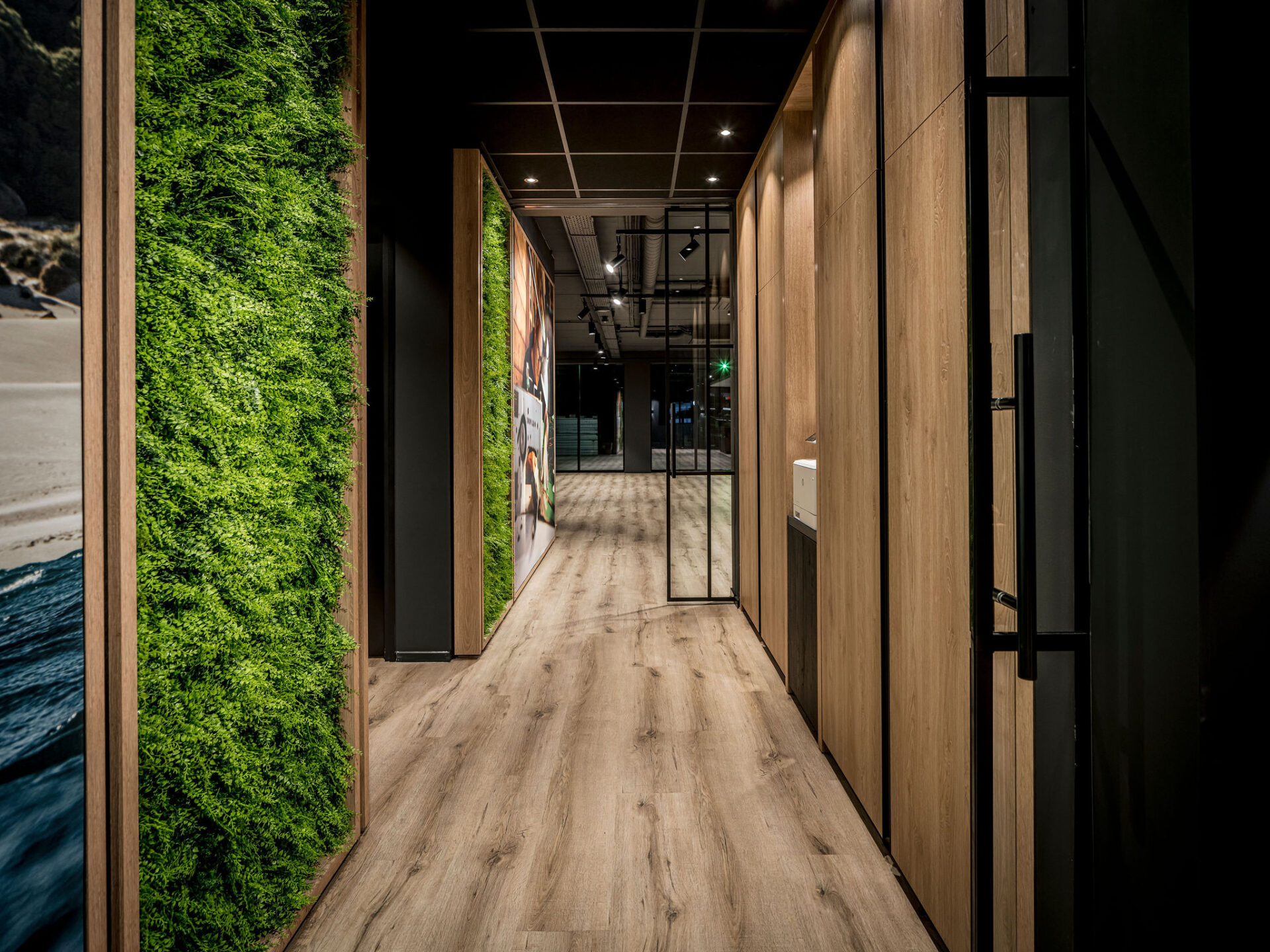 Ook over het ontwerp van de buitenkant heeft WSB meegedacht. Zo is het hout ook doorgevoerd in de gevel bekleding waardoor de connectie tussen buiten en inrichting binnen optimaal is. De werkplekken zijn allemaal voorzien van op maat gemaakt oplossingen voor het opbergen van producten en documenten. Door de werkplekken, bar en lounge (wachtplek voor klanten) te integreren hangt er een relaxte en gastvrije sfeer. Dit is kantoor werken anno 2022 in optima forma!
