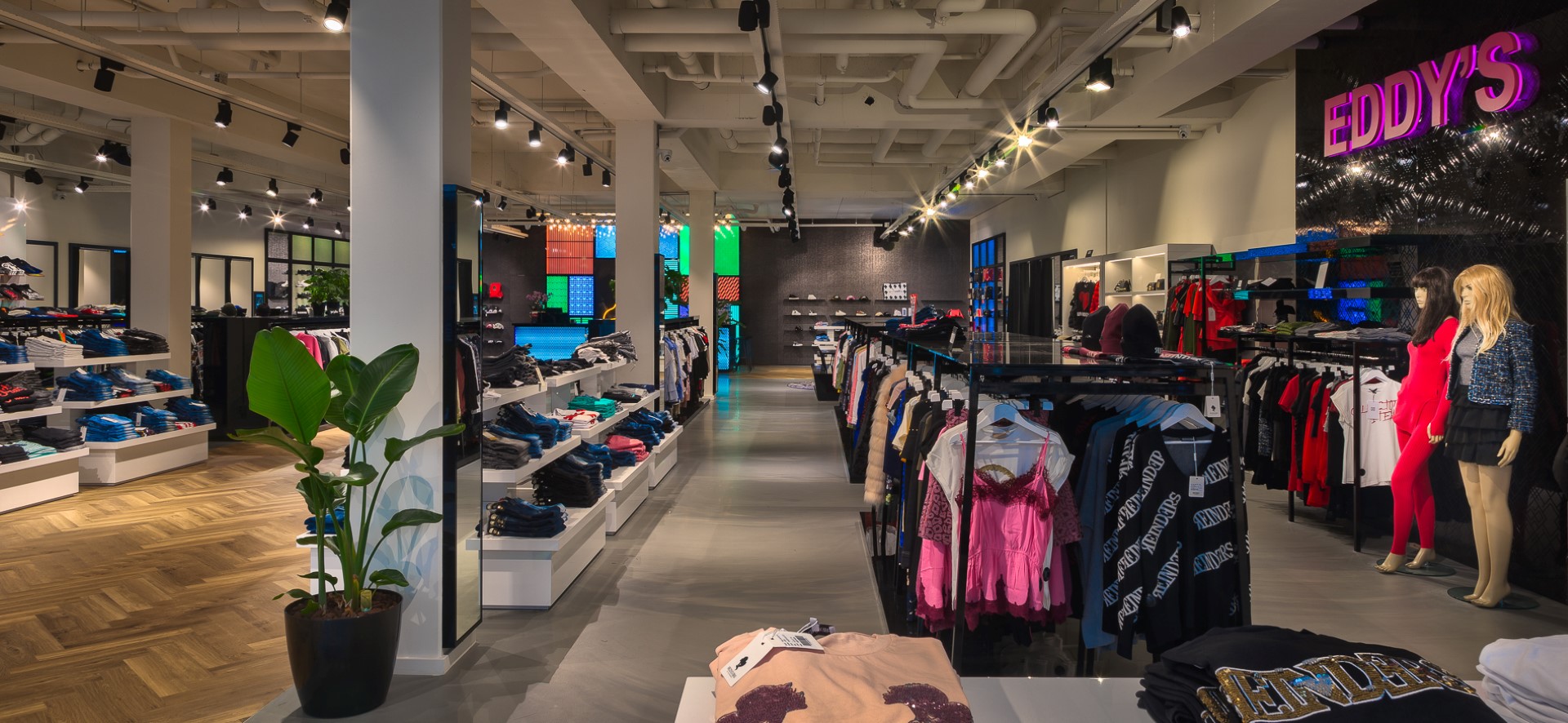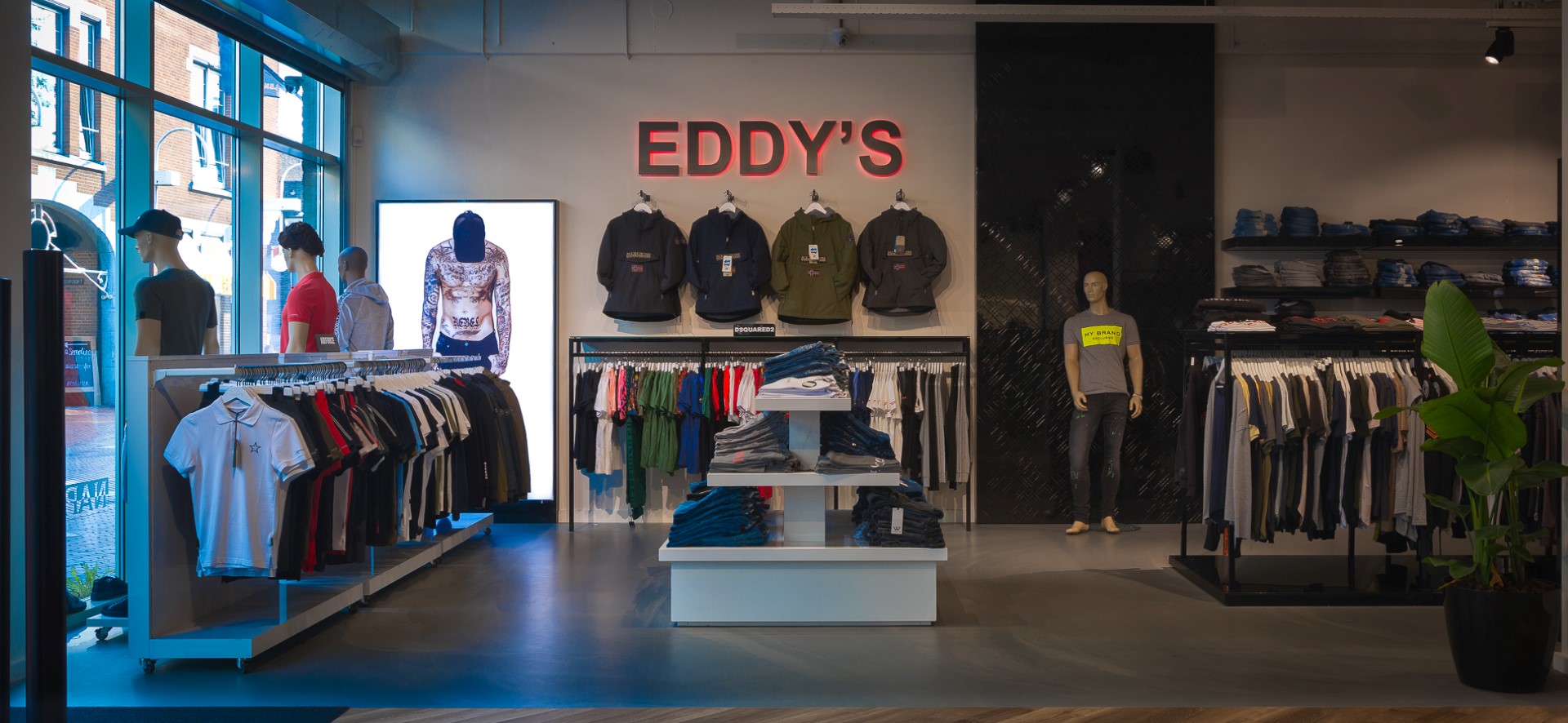 Eddy’s – groot in Fashion in de regio Eindhoven –  is verhuisd naar een nieuwe grote locatie, de oude bioscoop van Eindhoven. Rick Schreuder, Retail Design & Sales, van WSB over het nieuwe concept: “Eddy’s is hip, de echte merken liggen bij Eddy’s. Eddy’s is online groot. Dit zijn de innovatieve ondernemers die de modewereld nodig heeft in grote steden! De retail designers van WSB hebben daarop ingestoken.”