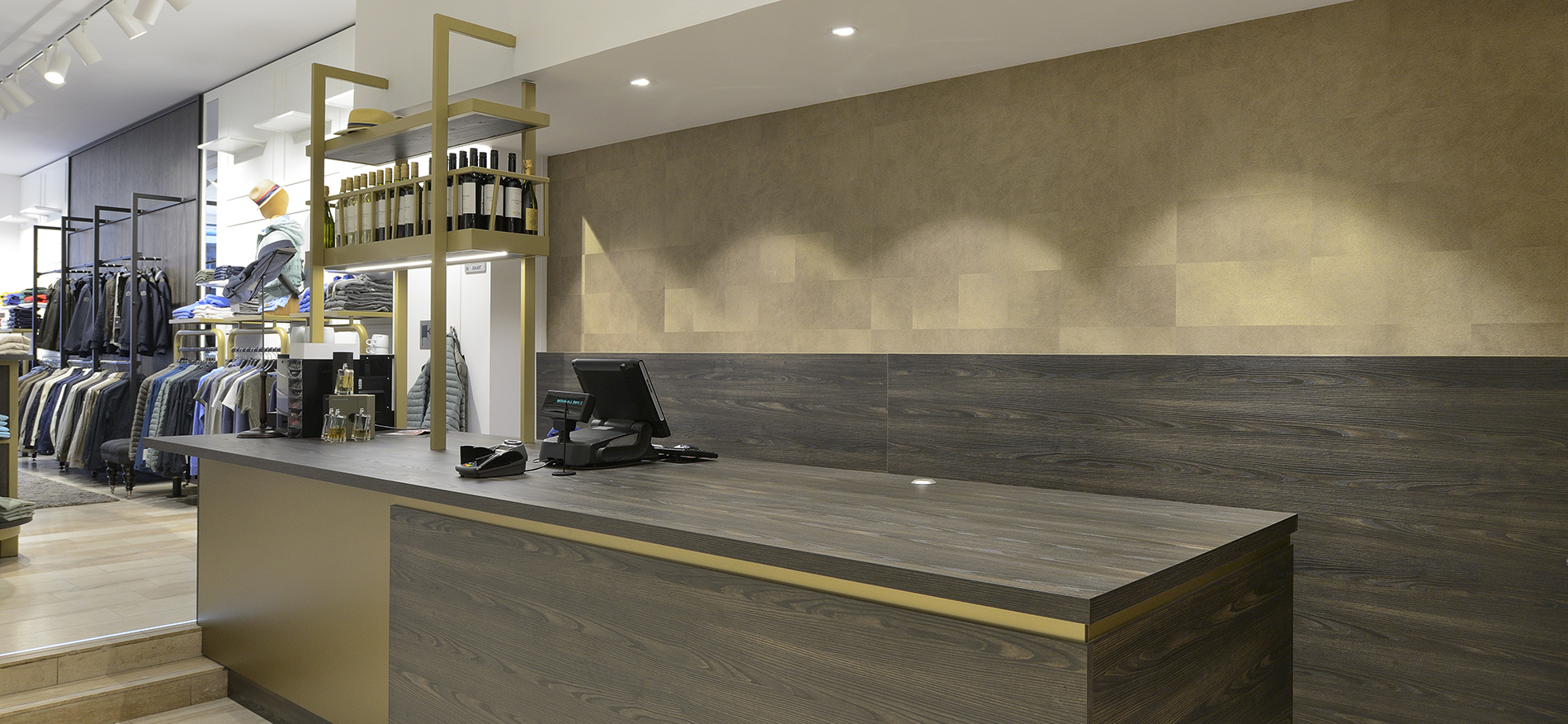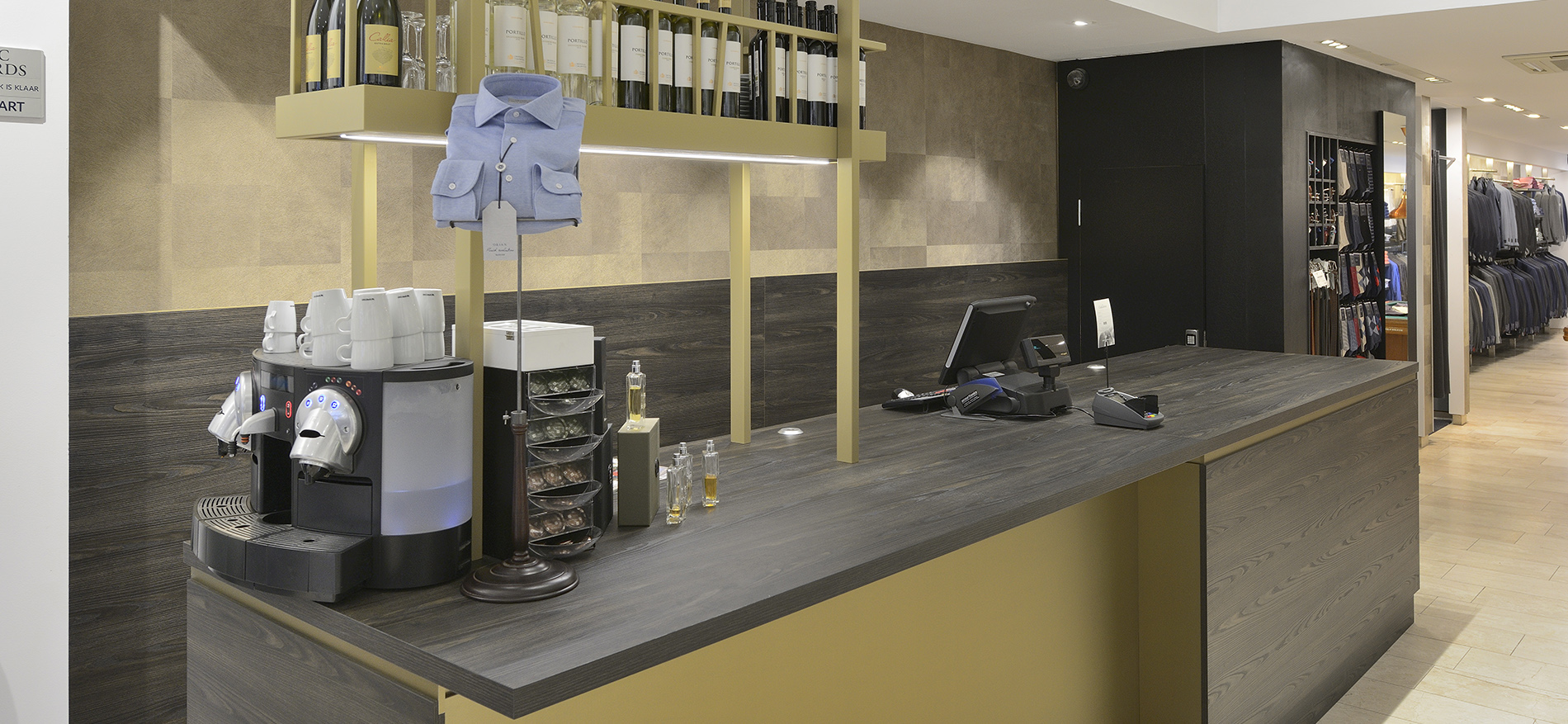 In een zeer kort tijdsbestek zorgden de retail designers van WSB voor een perfect plan met groenelementen, goudelementen, klassiek warme houstructuren in een aantrekkelijke winkelbeleving. De klasse Botticino vloer werd gehandhaafd.