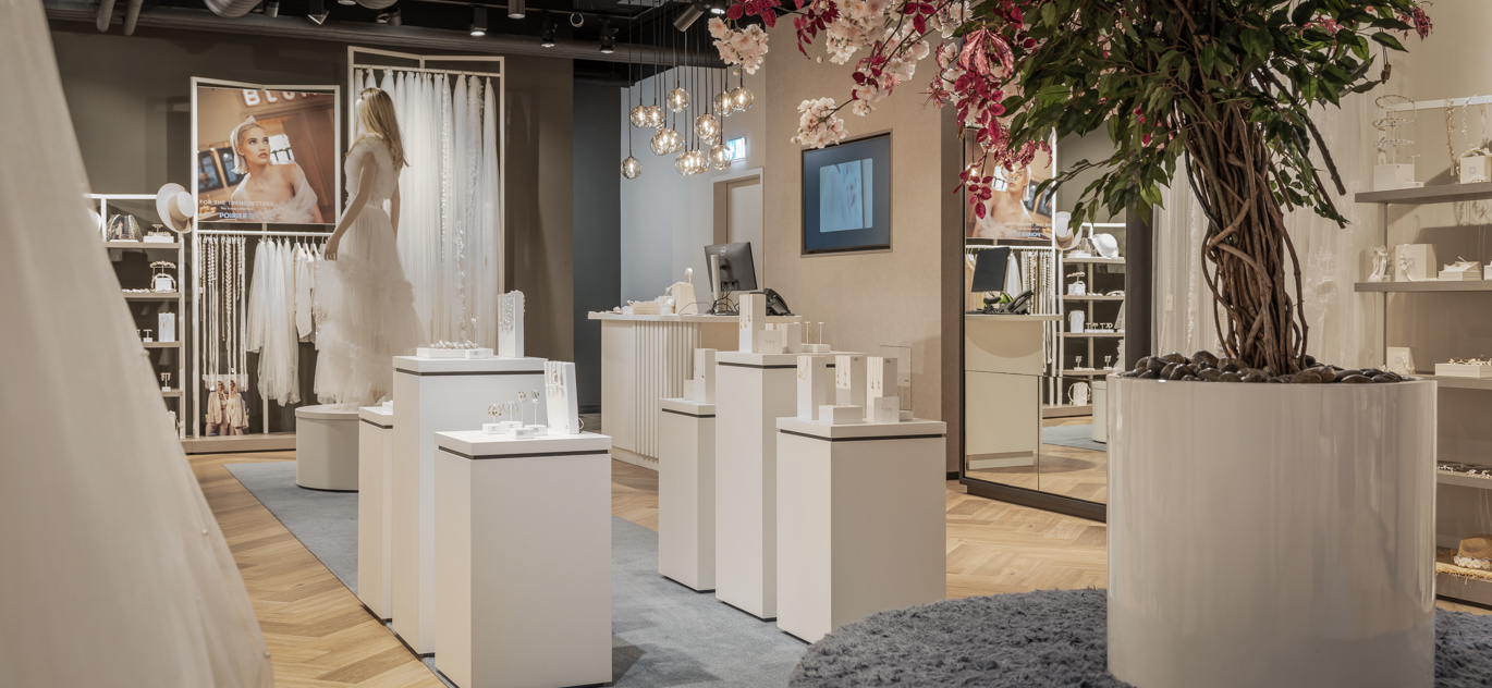 Shop-in-shop inrichting voor bruidsmode accessoires
