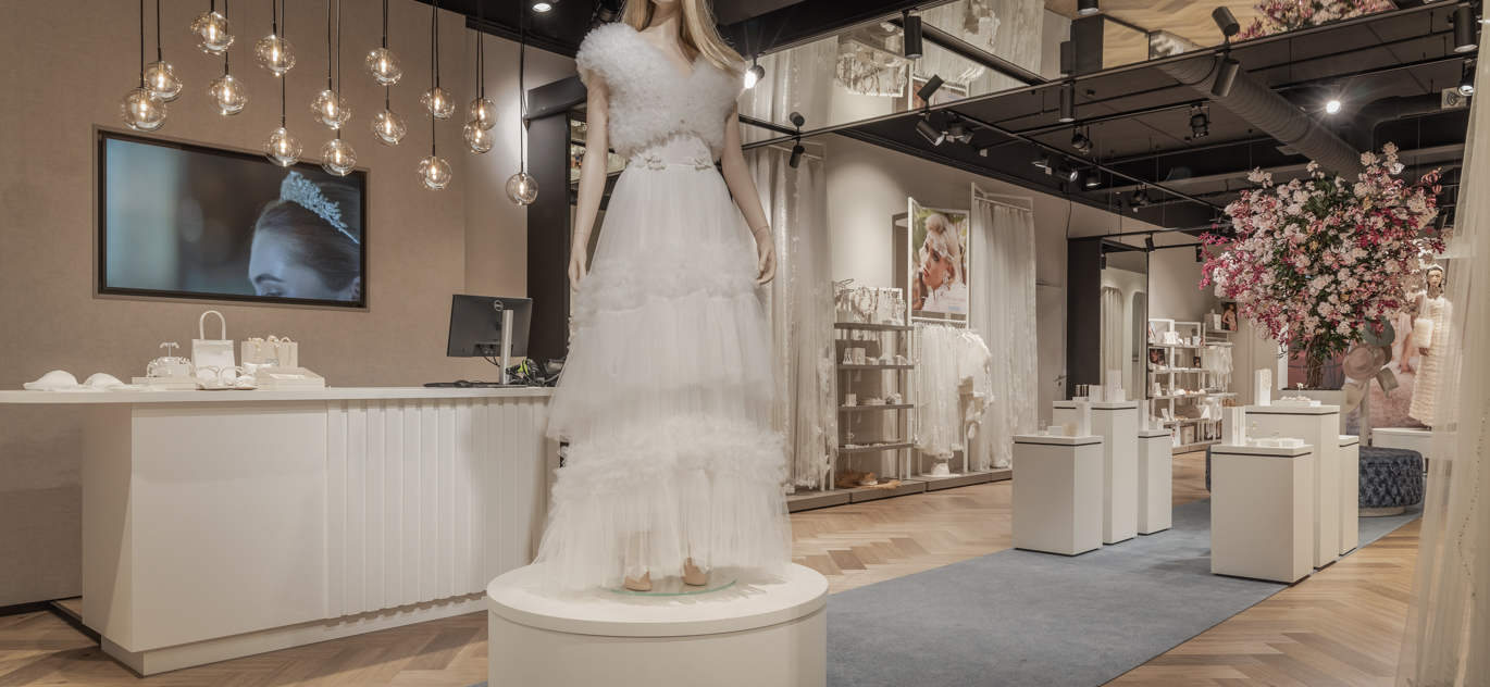 Poirier showroom inrichting voor bruidsmode & accessoires