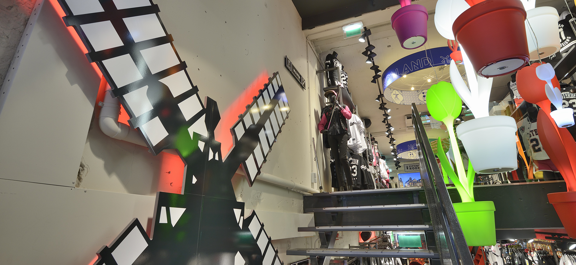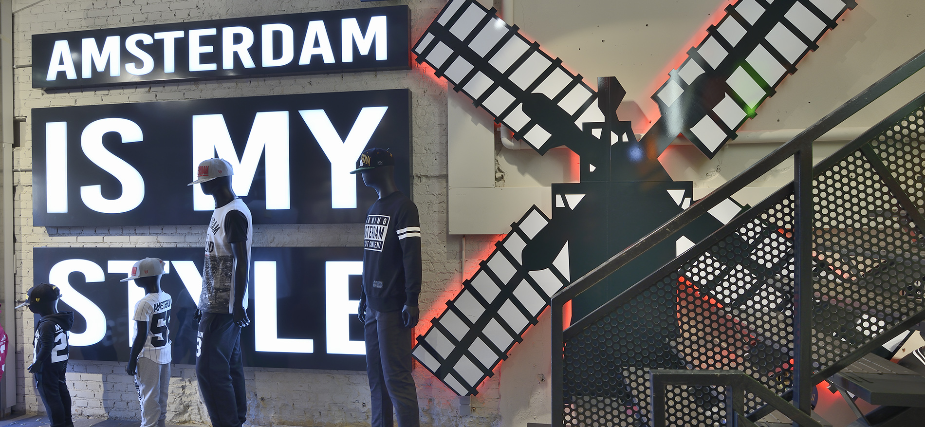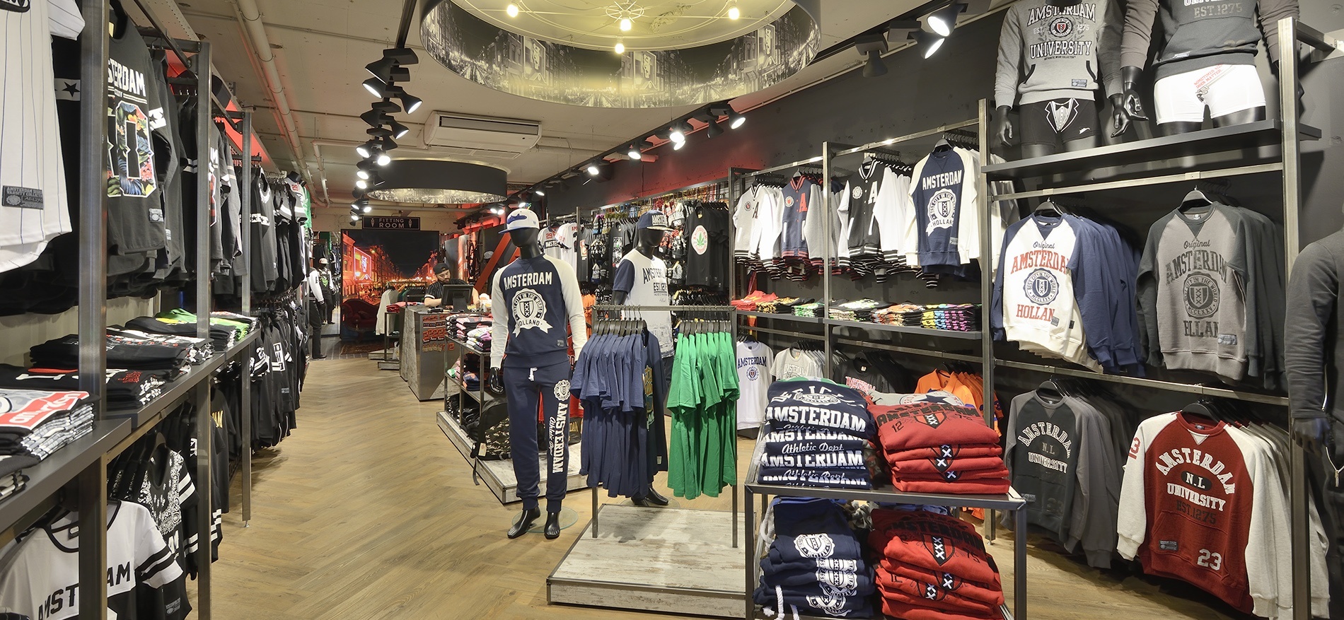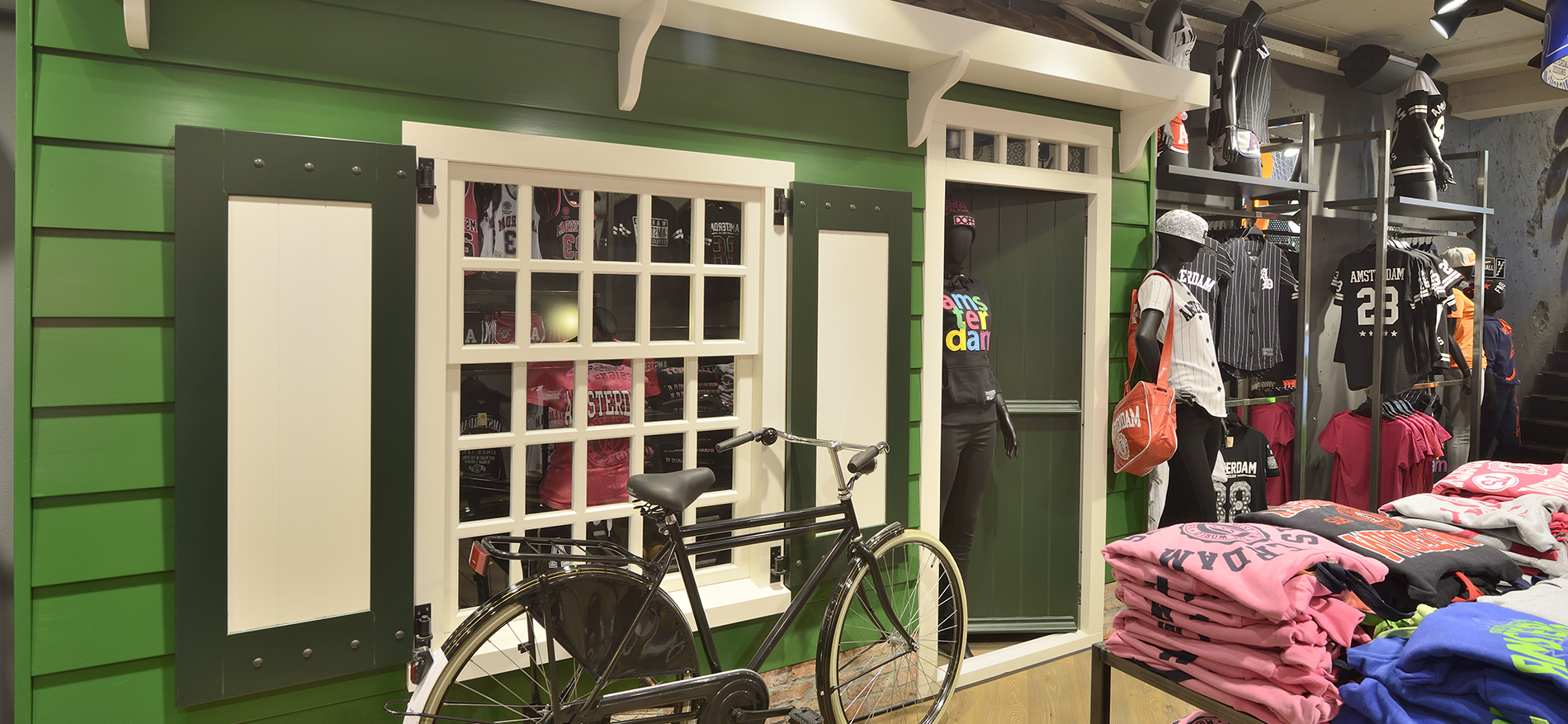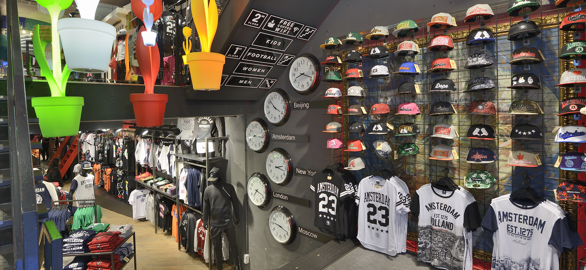 Rick Schreuder van WSB Interieurbouw beleefde veel plezier aan het ontwerp en de begeleiding van de nieuwe winkelinrichting voor Amsterdam Designs. De foto`s op de wanden en de klokken die verschillende tijdzones aangeven zijn uniek, en specifiek toegepast voor deze winkel. De winkel heeft een hoog fungehalte. En is typisch Hollands qua vormgeving en branding.