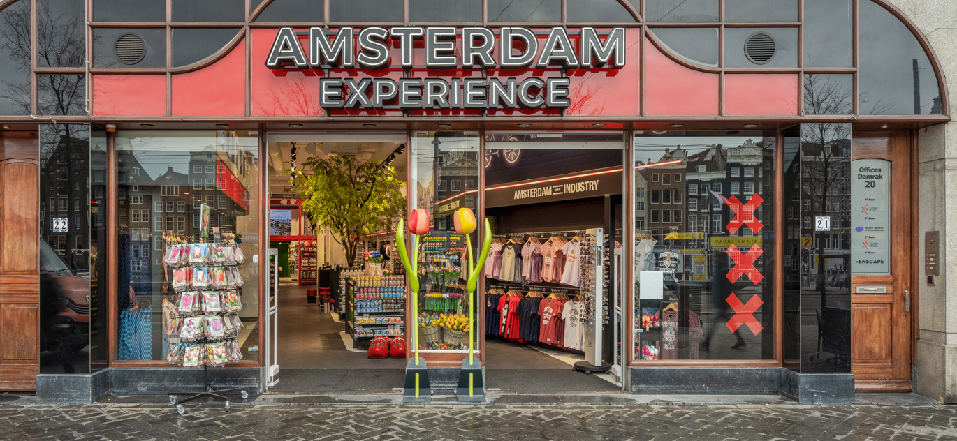 Souvenir & giftshop Amsterdam Experience, gelegen aan de bekende straat tussen Centraal Station en De Dam: Rokin, de Damrak van Amsterdam. Dagelijks lopen er duizenden toeristen langs, waarvan elk een potentiële klant zou kunnen zijn. Het is natuurlijk een grote kunst om tussen al de bezienswaardigheden en andere winkels op te vallen. Maar met de nieuwe winkelinrichting voor de souvenirwinkel door WSB zeker niet onmogelijk.