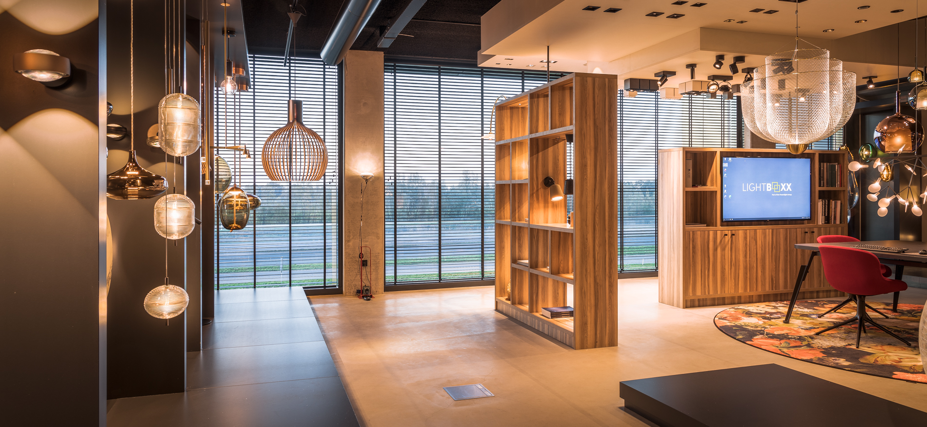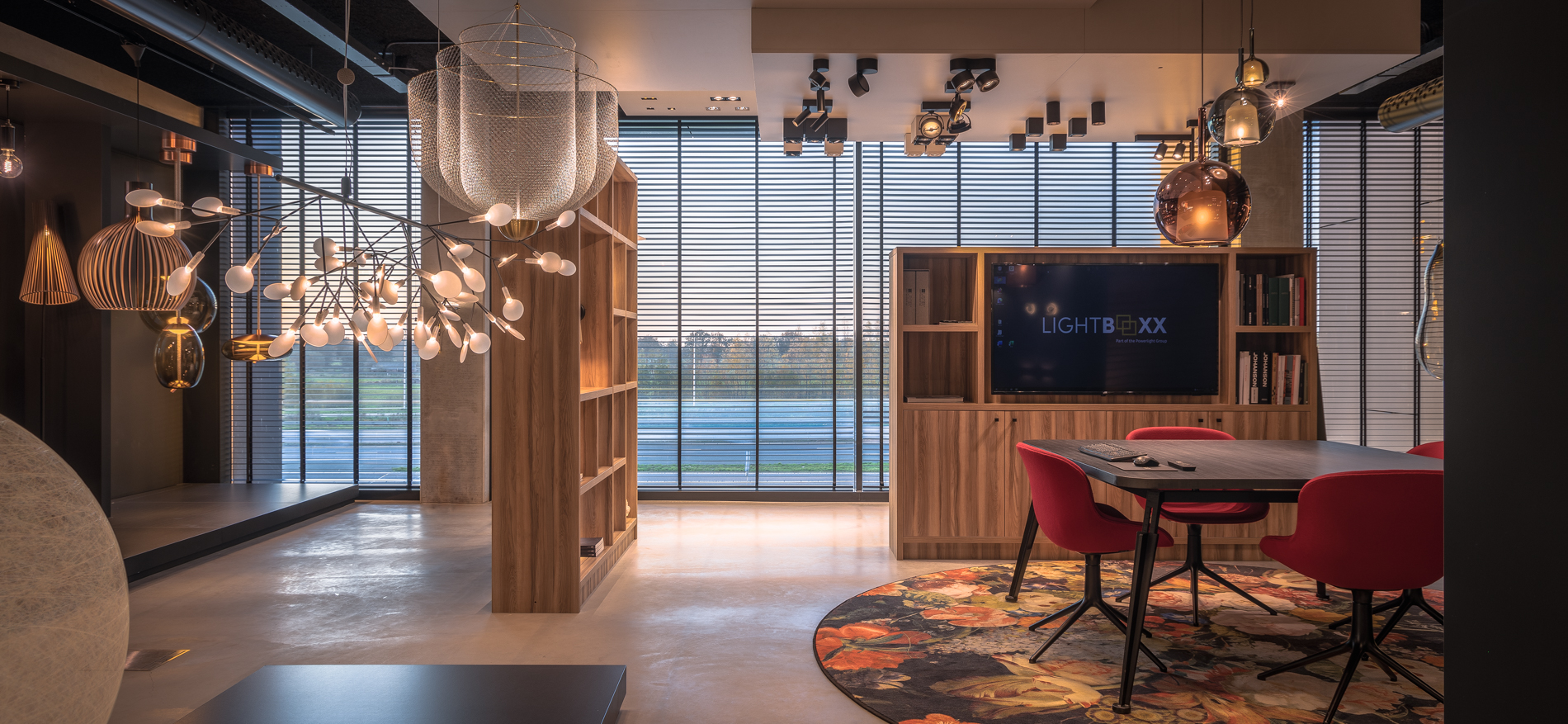 WSB kreeg de vraag of we een showroom wilde ontwikkelen bestemd voor de Design verlichting. Met de Design verlichting richt Lightboxx zich op consumenten en zakelijke partijen. Met de intake werd duidelijk dat elk merk een eigen box moest hebben voor de presentatie van verlichting. De boxen bestaan uit verschillende afmetingen waardoor grote en kleine merken hun producten goed kwijt kunnen. Een echte eyecatcher is het plafond wat ook uit verschillende blokken bestaat, hierin zit de inbouwverlichting verwerkt. De presentatie zit kan worden gebruikt voor uitleg, een bakje koffie of een verkoopgesprek.