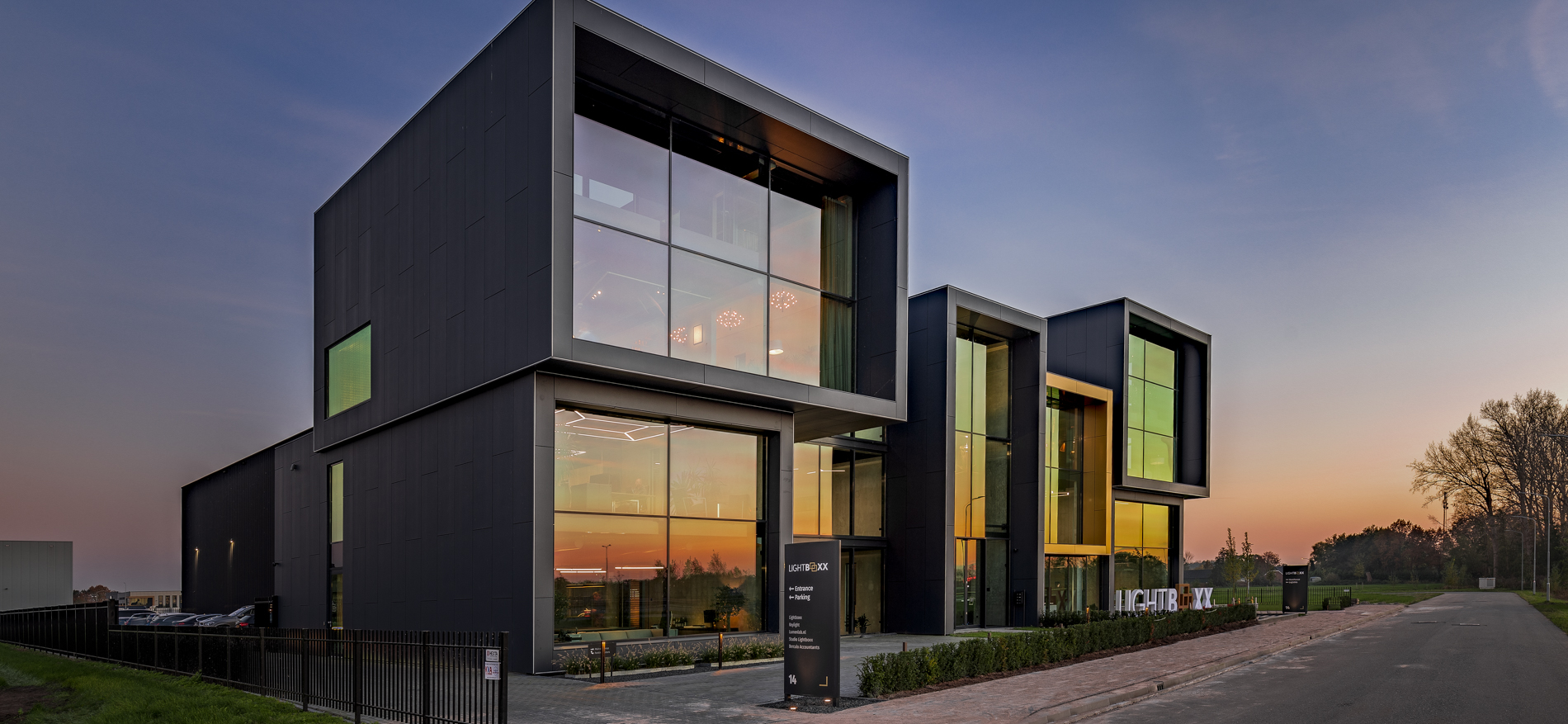 Met ruim 25 bevlogen en creatieve lichtontwerpers werken de mensen van Lightboxx dagelijks aan de mooiste en meest uiteenlopende lichtplannen. Er wordt een totaal oplossing geboden in verlichting voor zowel bedrijven als particulieren. Lightboxx is marktleider op het gebied van unieke lichtconcepten, design verlichting, domotica en Barrisol spanplafonds. Het oude pand van Lightboxx werd te klein en paste niet meer bij de visie van het management. Daarom hebben ze niet alléén het pand maar ook de merknaam veranderd. Het prachtige pand bestaat uit verschillende boxen gevuld met een complete wereld van licht. De naam Lightboxx past hier perfect bij.