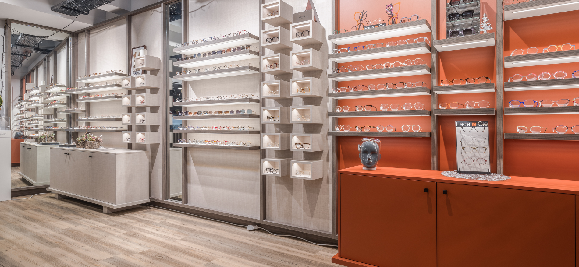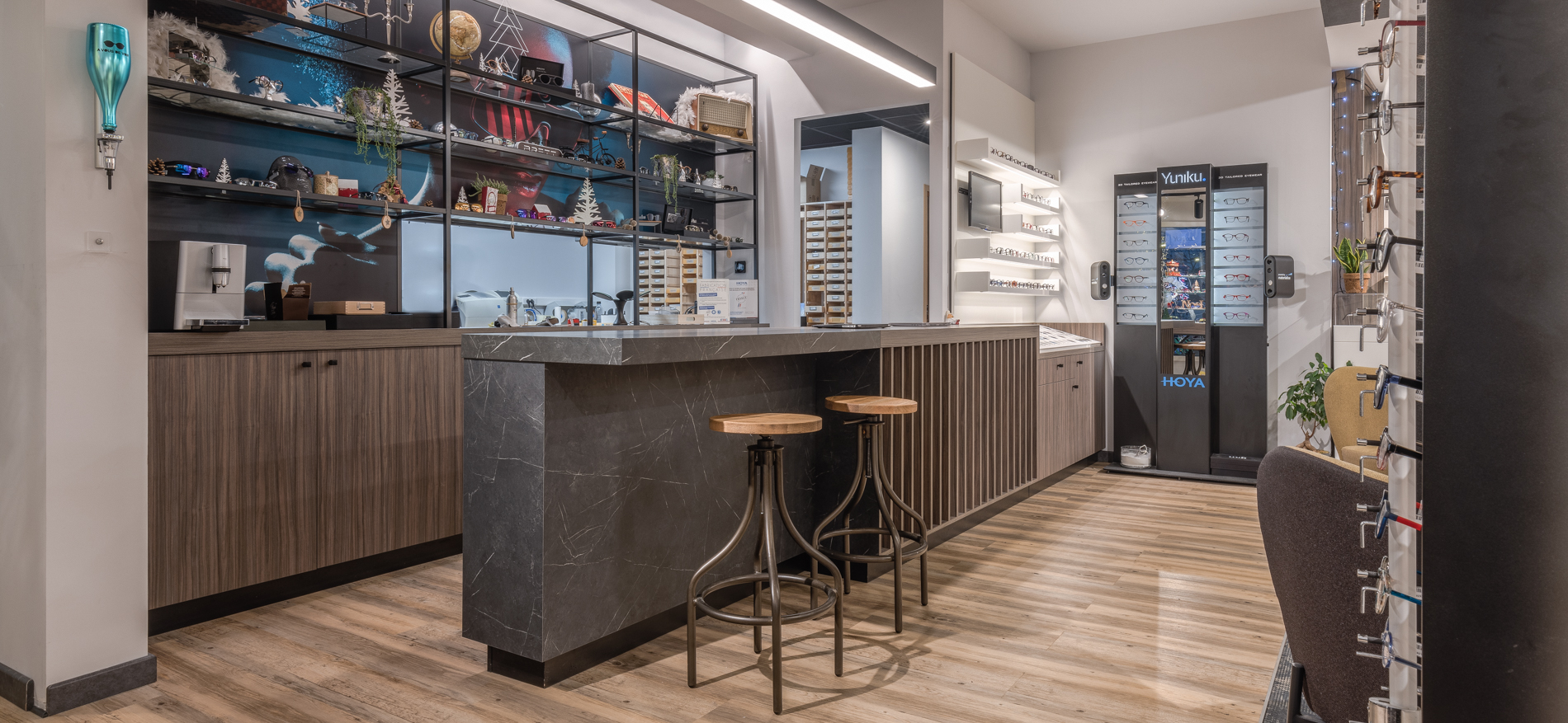DNA van het interieurontwerp van de optiekzaak