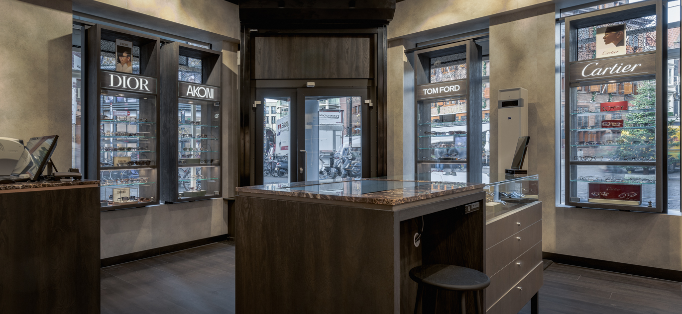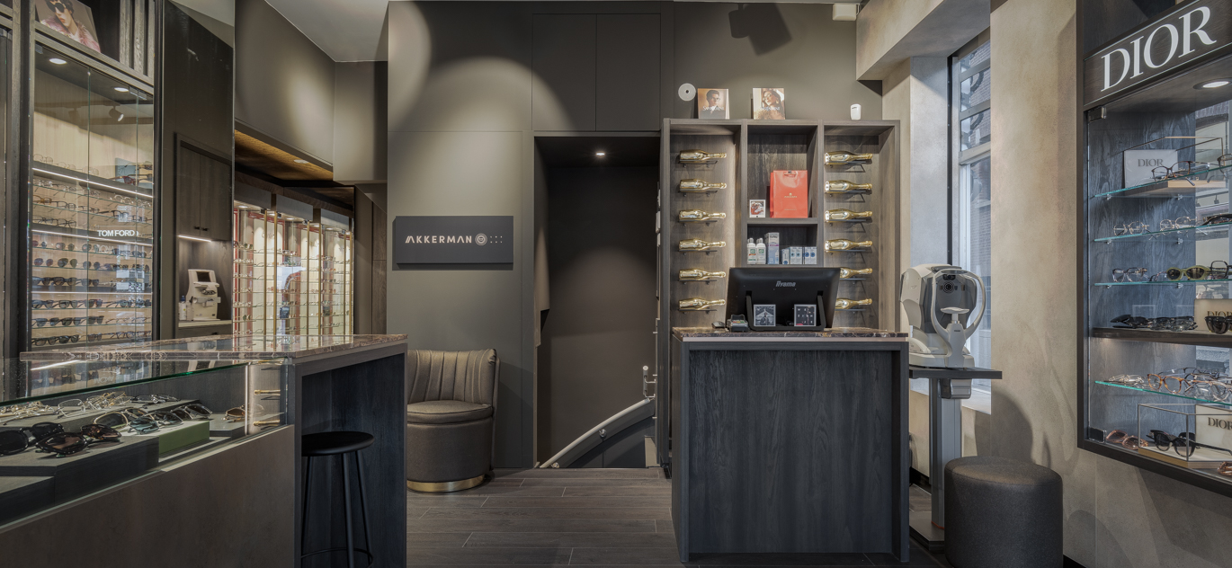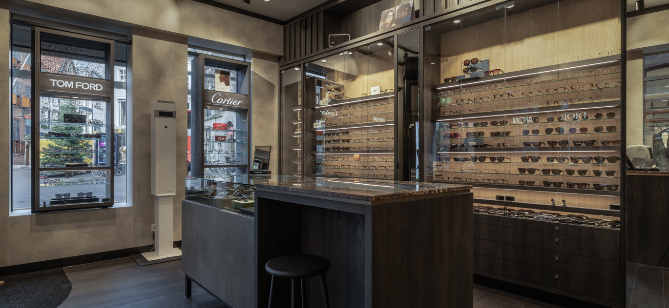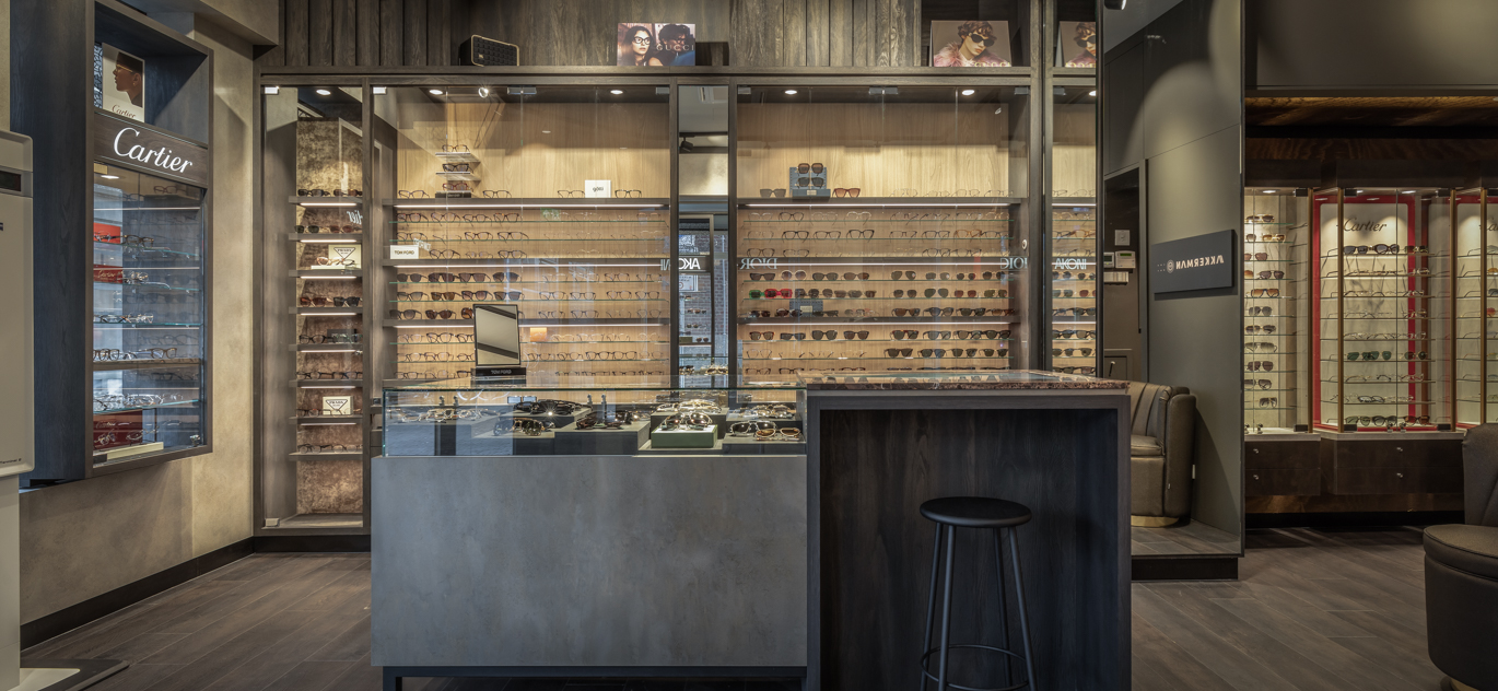Qua look en feel is het een doorvertaling van Rotterdam, inclusief de gouden volt waar de meest luxe brillen in verkocht worden. De opzet van de winkelinrichting is ruimtelijk gebleven met maximale transparantie van buitenaf. Dit zonder in te leveren op etalage en presentatieruimte. Binnen in de optiekwinkel is gekozen om alle brillen achter glasdeuren te presenteren. Behalve een luxe uitstraling creëert dit ook de nodige veiligheid voor de high end optiek brilcollectie. De boetiek staat regelmatig heel vol en dan is dat een must.