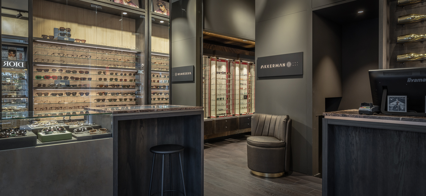 Voor de boetiek in Den Haag realiseerde WSB een op maat gemaakt winkelinterieur dat de essentie van luxe en vakmanschap weerspiegelt. De optiekzaak, gespecialiseerd in high-end optiek, combineert verfijnde materialen en elegant design voor een onmiskenbare uitstraling van exclusiviteit. De gebruikte materialen, zoals marmer, en de hoogwaardige afwerkingsdetails dragen hier aan bij en geven de optiekwinkel een indrukwekkende, luxe uitstraling die perfect past bij de exclusieve brillencollectie die hier wordt gepresenteerd. Klanten worden verwelkomd in een stijlvolle omgeving die niet alleen de producten, maar ook de merkidentiteit van Akkerman Eyewear versterkt.
