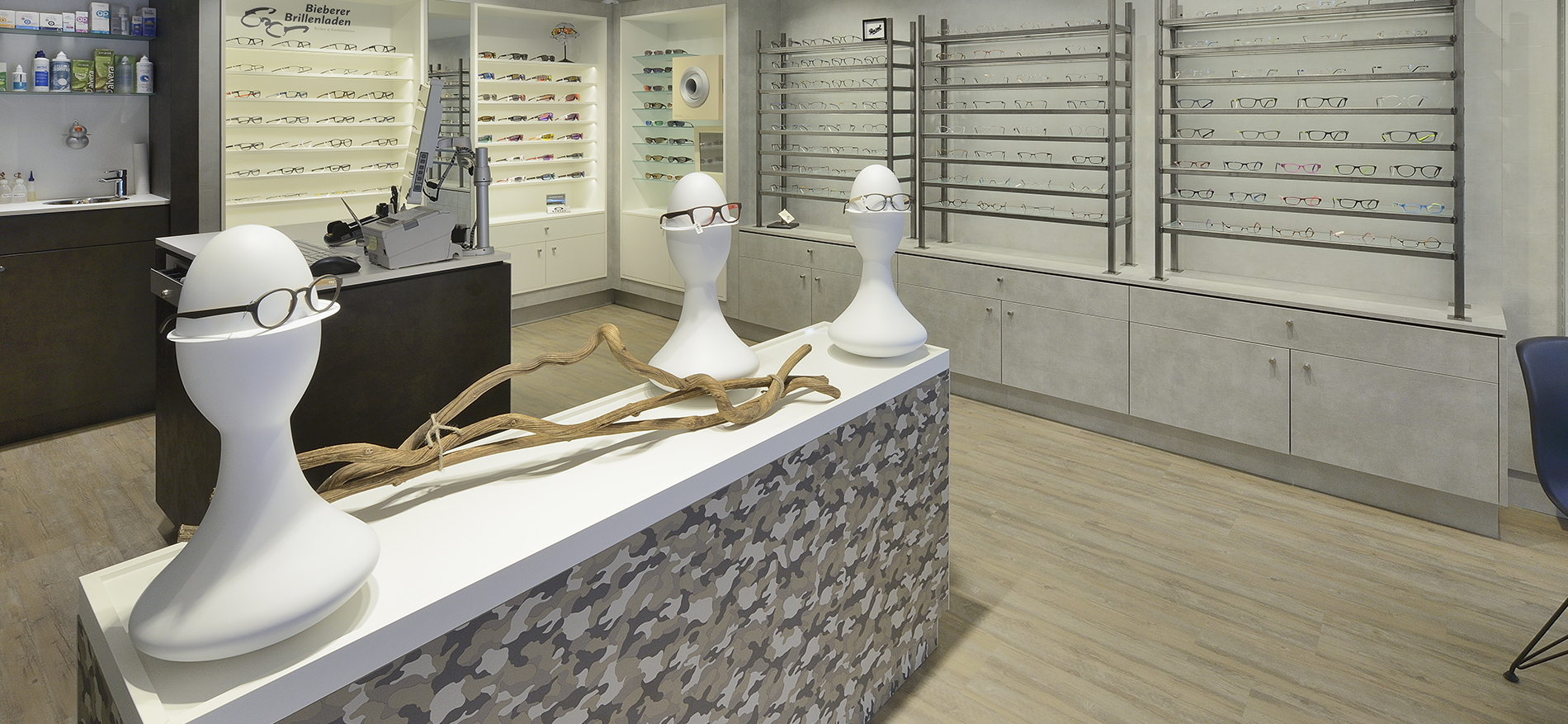 In de omgeving van Offenbach am Main is Bieberer Brillen een begrip. De uitdaging voor de retail designers van WSB was de hoeveelheid brilpresentatie in een relatief kleine ruimte. Daarnaast kreeg de winkel een persoonlijke punche door de materialisatie. WSB heeft gekozen om de refractieruimte te integreren in de winkel in het kader van de ruimtelijkheid.