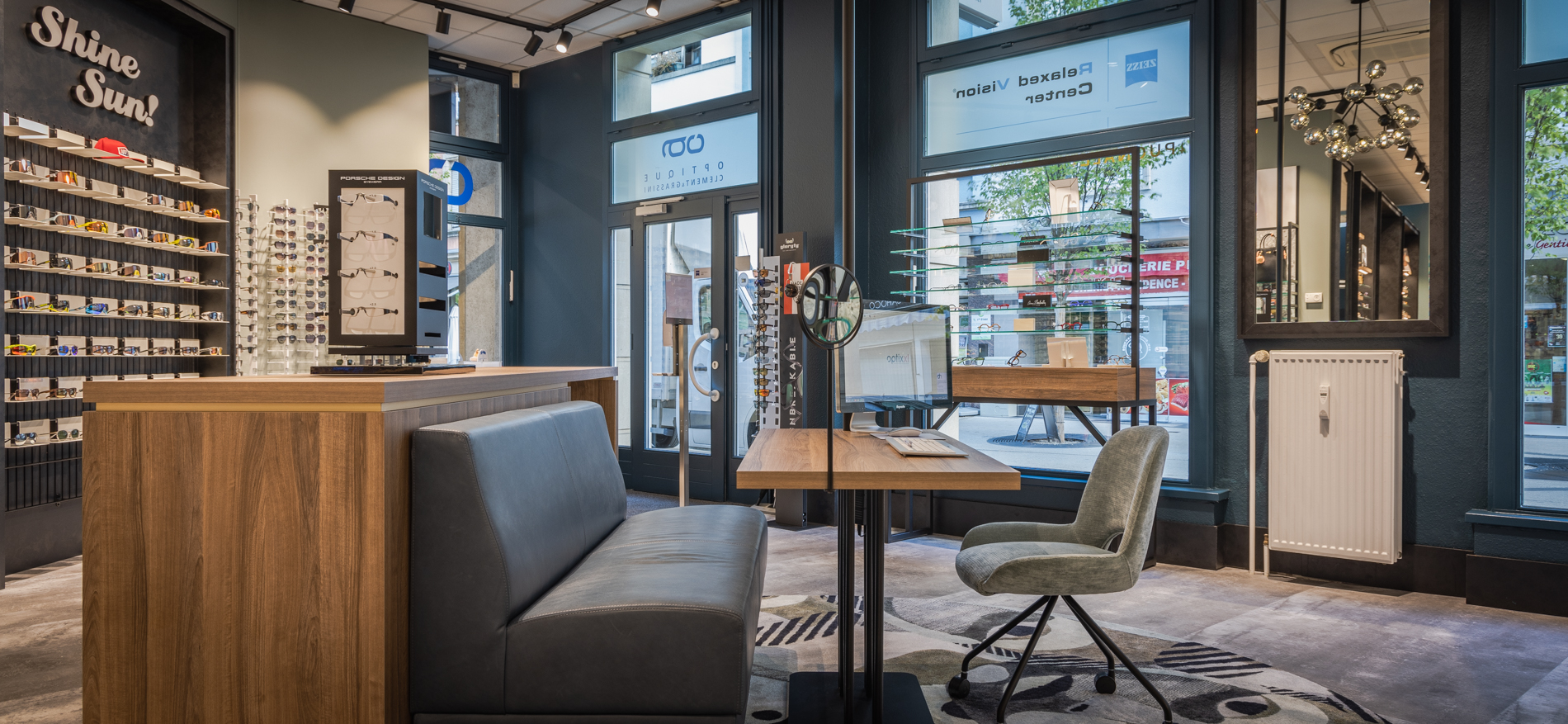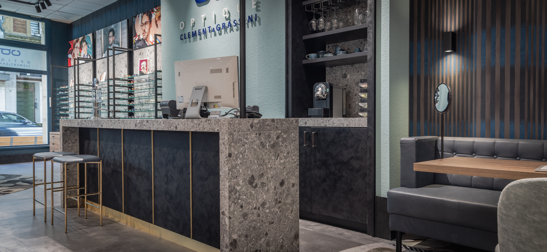 Tien jaar geleden namen Alain Clement en Laurent Grassini de optiekzaak over. Nu waren ze toe aan een verbouwing, aangezien het niveau in de loop der jaren aanzienlijk was verhoogd en de bestaande winkelinrichting dit niet weerspiegelde. Een aangrenzende winkel werd gehuurd om de verkoop- en adviesruimte te vergroten. De testruimte en werkplaats werden ook uitgebreid.