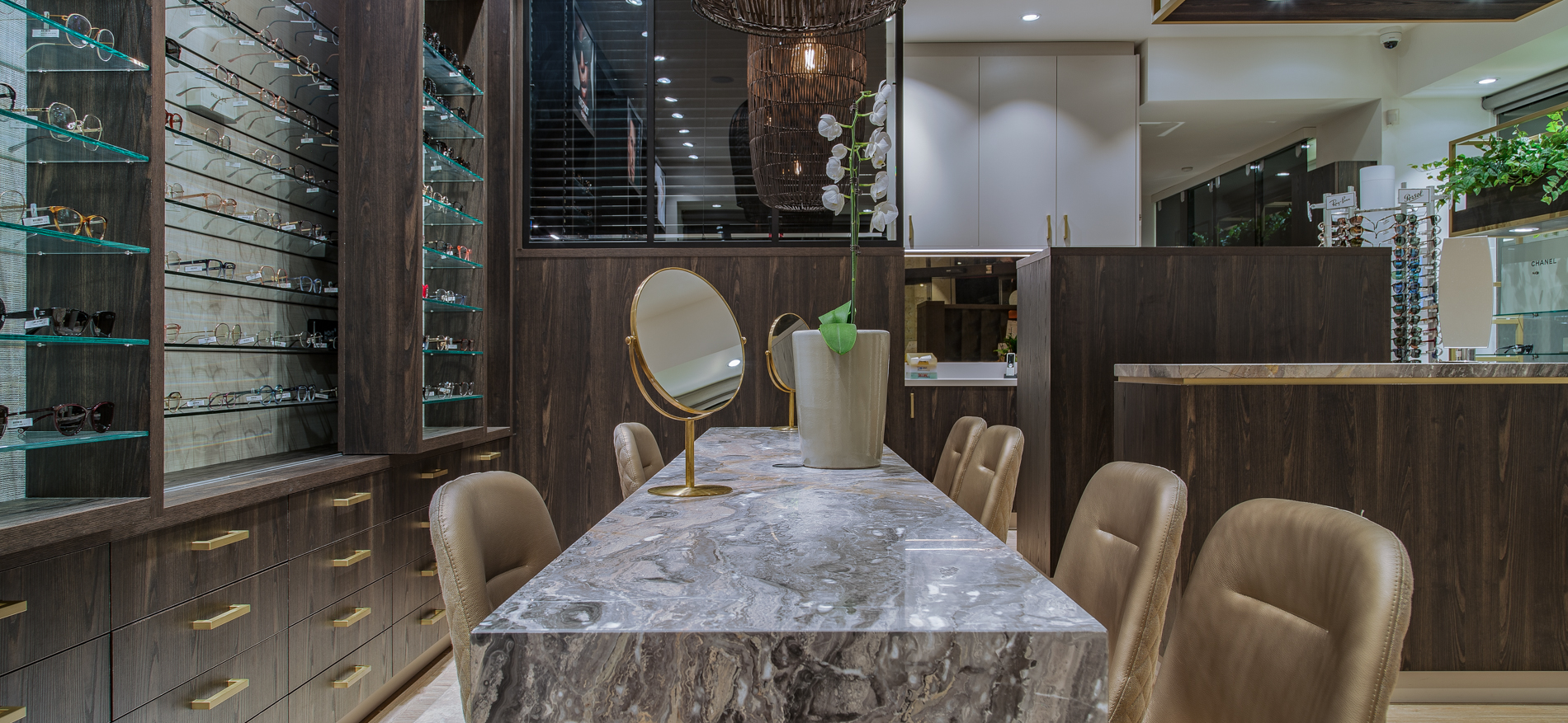 Het gesprek met Rick Blankenstijn van WSBDESIGN.COM mondde uit in de opdracht om een ontwerp te maken voor een moderne gevel met kwalitatieve uitstraling en een mooie optiekzaak waar alles tot op de millimeter geoptimaliseerd diende te worden. Want groot is de winkel niet, maar er wordt wel veel verkocht. Materialen? Puur natuursteen met artisan-accenten en gerookt glas..