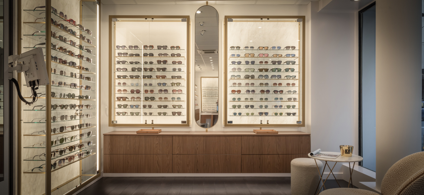 De opdracht was helder: ontwerp een winkelinterieur dat luxe en exclusiviteit uitstraalt en waarin hoogwaardige materialen zoals natuursteen, houtfineer en leer worden gebruikt. WSB heeft deze optiekzaak ingericht met een verfijnde, elegante stijl die zowel uniek als herkenbaar is. In de optiekzaak worden de mooiste brillencollecties gepresenteerd in op maat gemaakte glazen vitrines, die perfect passen bij het luxe winkelinterieur.