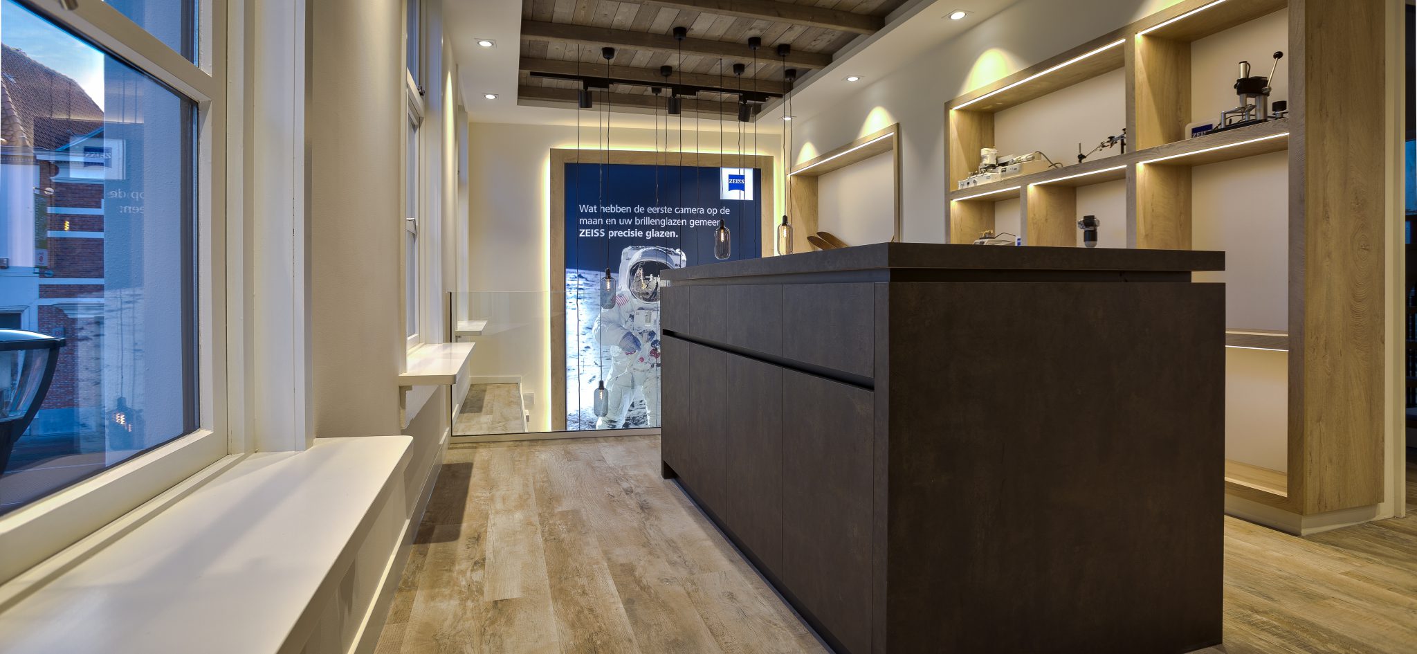 Het ontwerp van de optiekwinkel was in 1x raak. De budgettering (het pand is tot op de draad gestript en bouwkundig gerenoveerd) hebben we door een goed inkoopproces in het belang van de klant in goede banen geleid. En nu na een voorspoedige realisatie is alles achter de rug.