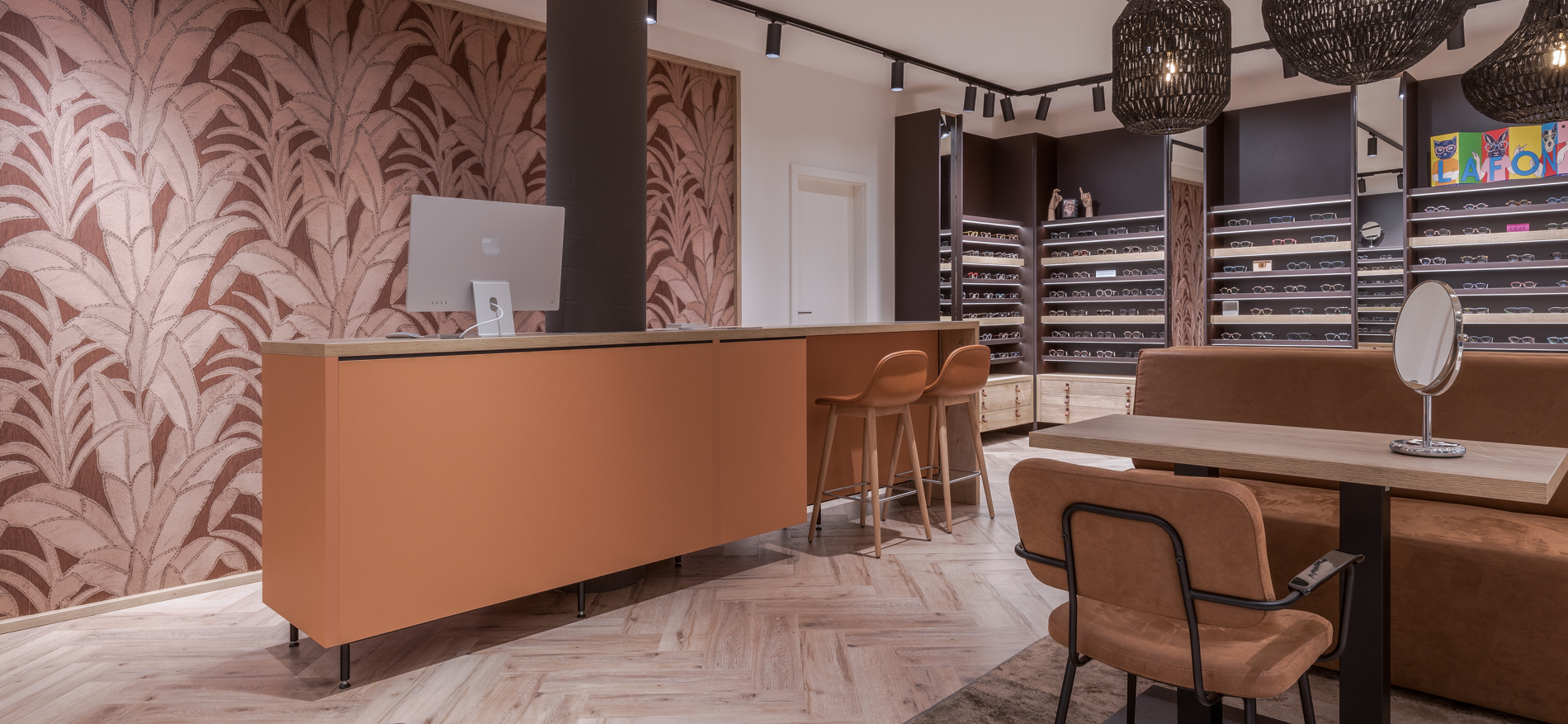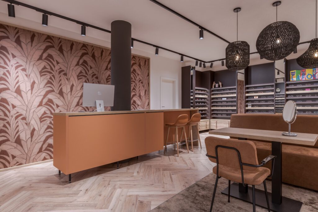 Optiek ontwerp en inrichting balie WSB Interieurbouw