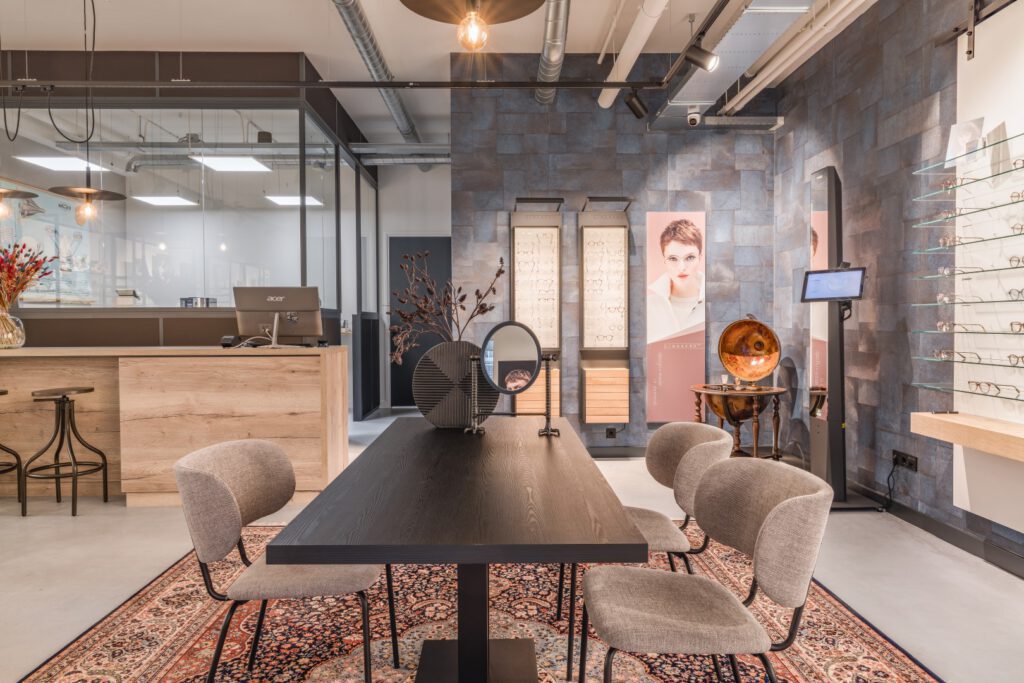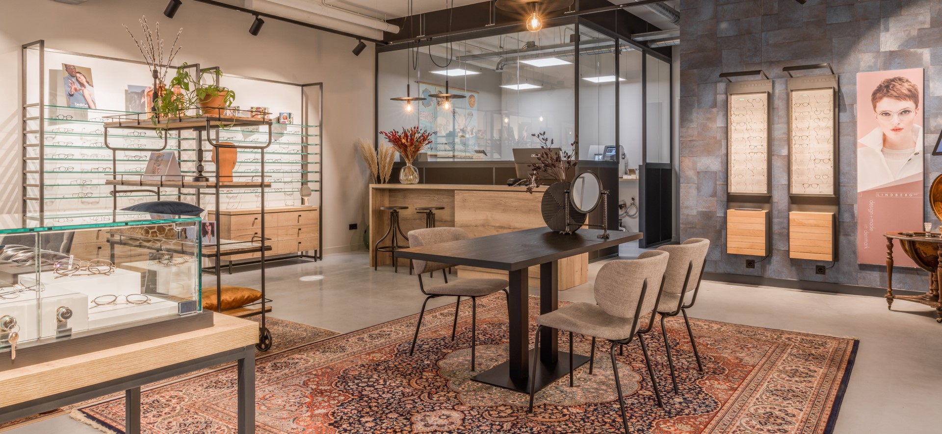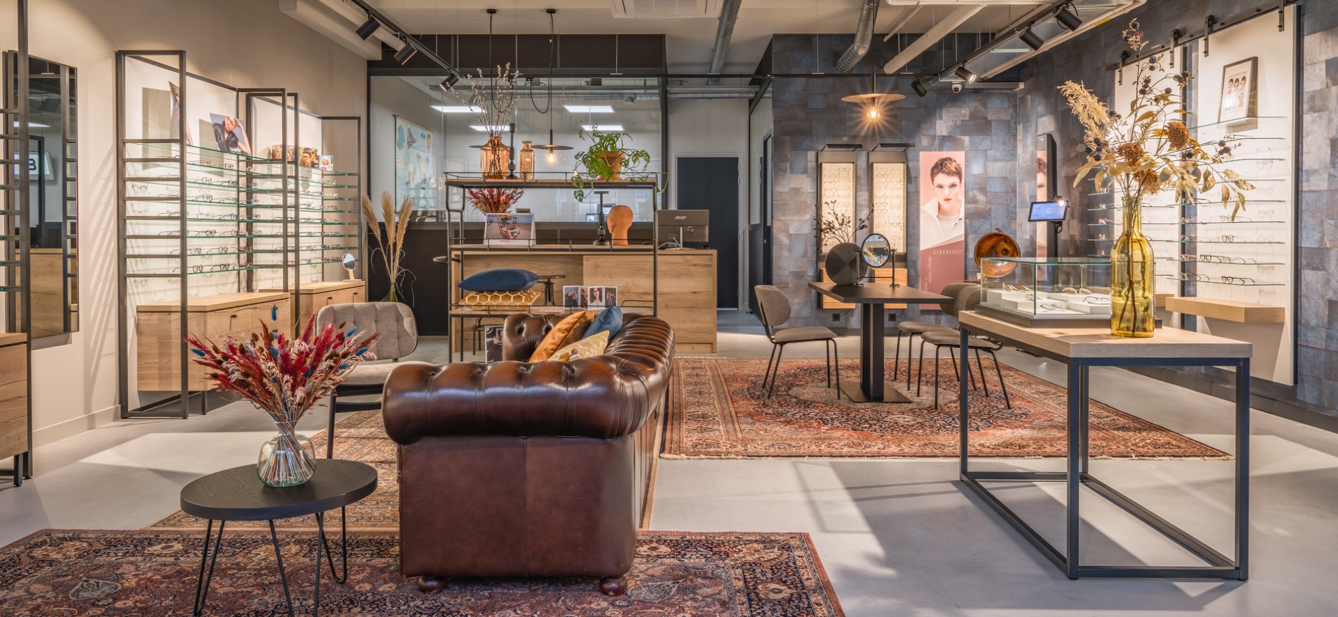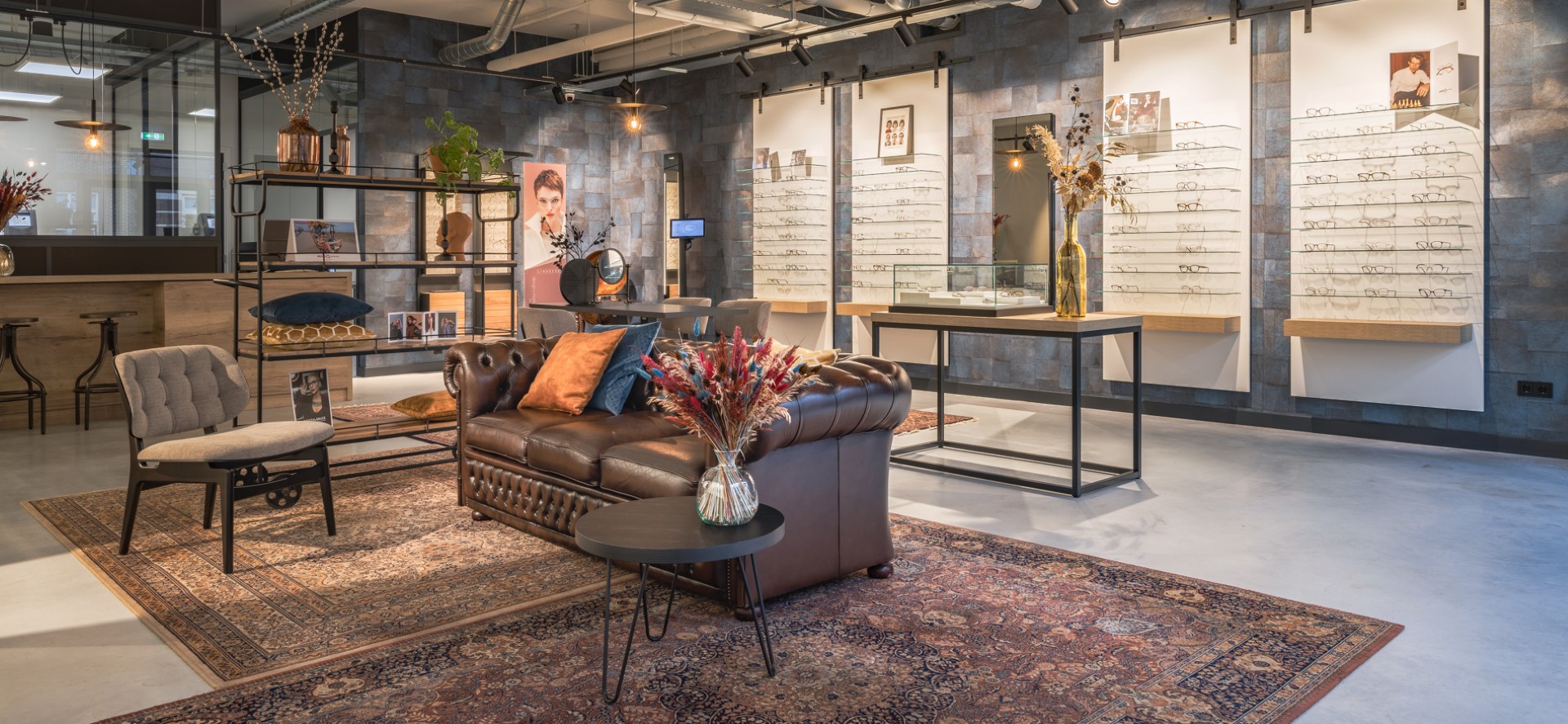 Door dit te combineren met high-end materialen en structuren zoals behang en decoratie is er een stijlvol geheel ontstaan. De werkplaats en refractie zijn geheel in lijn met stalen kozijnen afgescheiden van de winkel. Een ontspannen wacht en bar zitje geven de winkel een open uitstraling. Hier kan iedereen terecht voor een knap montuur maar is er ook tijd voor een praatje en een goede espresso. Een high end winkel beleving voor een toegankelijke prijs. Het uiteindelijke resultaat slaat aan, de eerste reacties en resultaten zijn ronduit positief!”