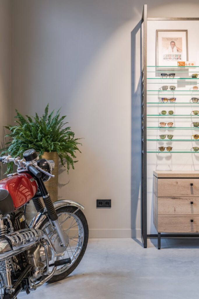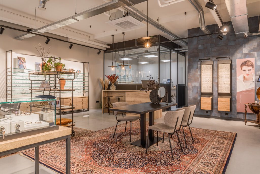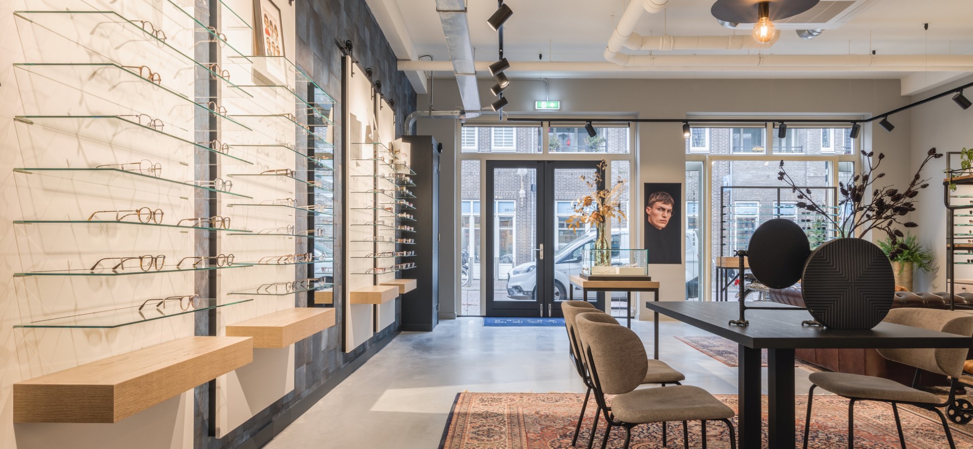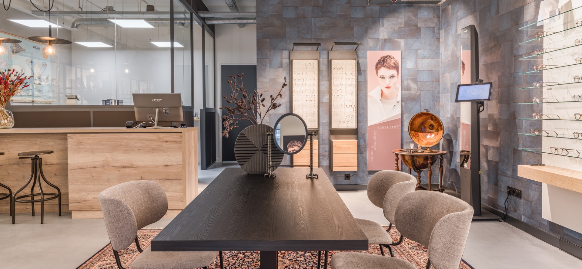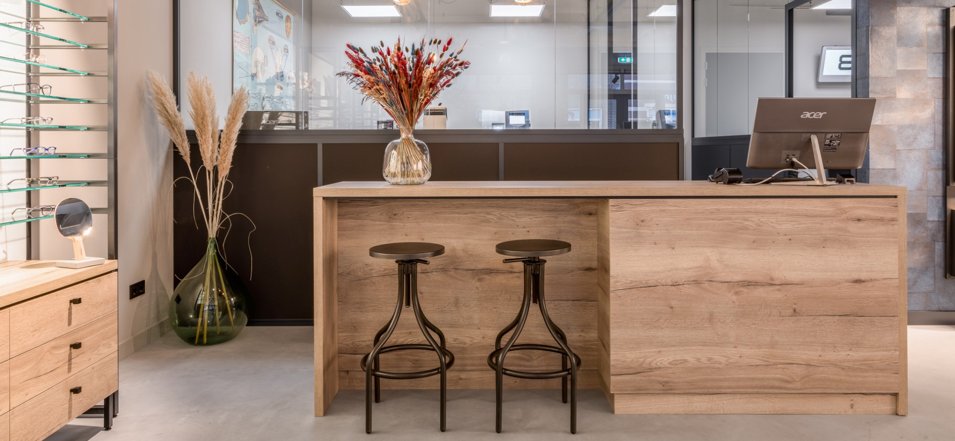 Door dit te combineren met high-end materialen en structuren zoals behang en decoratie is er een stijlvol geheel ontstaan. De werkplaats en refractie zijn geheel in lijn met stalen kozijnen afgescheiden van de winkel. Een ontspannen wacht en bar zitje geven de winkel een open uitstraling. Hier kan iedereen terecht voor een knap montuur maar is er ook tijd voor een praatje en een goede espresso. Een high end winkel beleving voor een toegankelijke prijs. Het uiteindelijke resultaat slaat aan, de eerste reacties en resultaten zijn ronduit positief!”