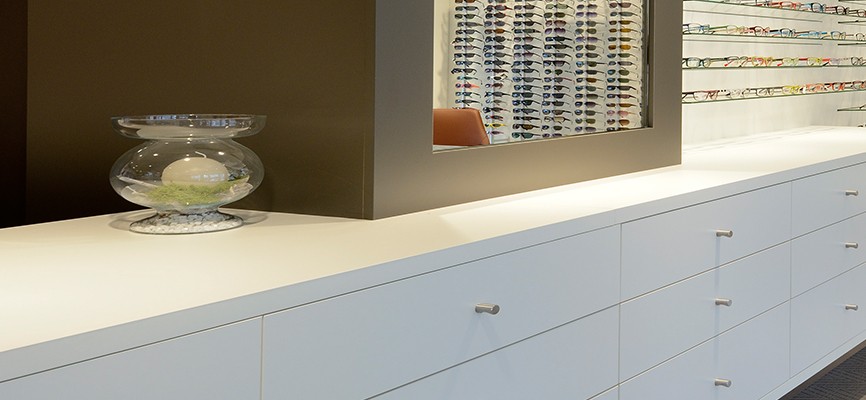 Naumann Optiek is blij met de nieuwe winkelinrichting van hun optiekzaak. WSB is verantwoordelijk voor het ontwerp en de uitvoering. Naast de vele standaard brilpresentatie probeert WSB Interieurbouw iedere keer weer unieke presentatie in unieke beleving te creëren. Klanten willen geen eenheidsworst maar beleving.
