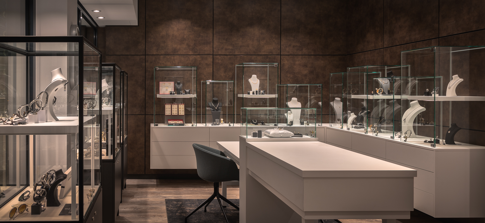 Een gecombineerde winkel op hoog niveau voor brillen en sieraden. Het is mogelijk gemaakt in het duitse Siegen. De familie Piwowarski is toonaangevend. Dat komt onder meer tot uiting in de samenwerking met Zeiss op het gebied van glastechnologie en de merken die verkocht worden. Maar vooral ook in het persoonlijk contact en de service. Bij deze uitgangspunten hoort een aansprekend en uniek ontwerp van de winkel met aandacht voor een goed werkproces.