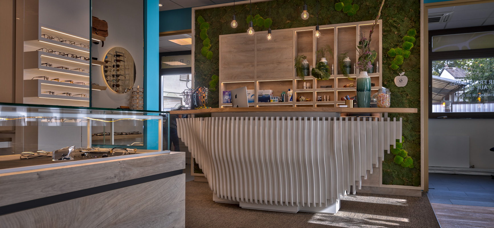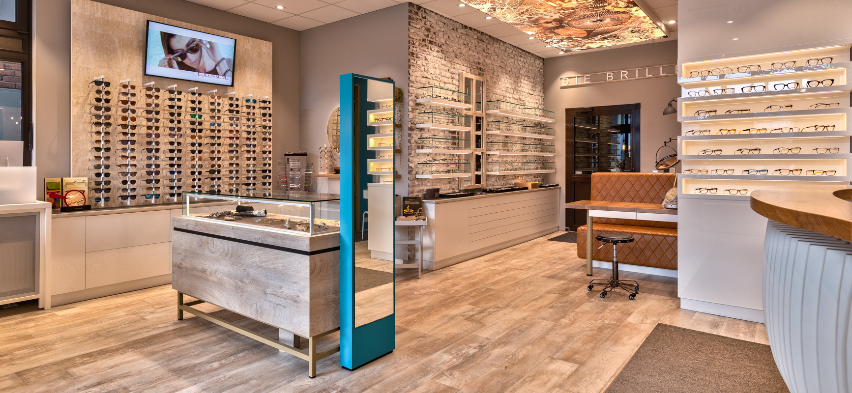 In Kriftel heeft het team van WSB Interieurbouw de winkel van “Die Brille” ontworpen en gerealiseerd. Na de grondige restyling is de winkel veel toegankelijker geworden met warme accenten, heldere verlichting en speciale elementen als de amorfe balie en een zwevend plafond element.