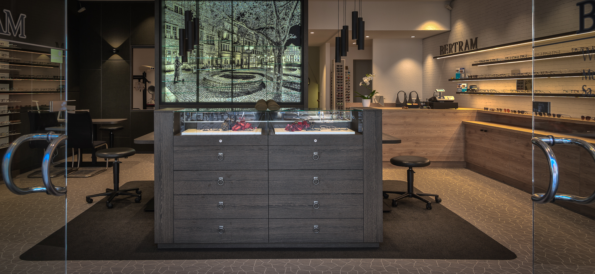 Bertram Optiek speelt op dit gevoel in door WSB de opdracht te geven een prachtige ontwerp te maken van de nieuwe winkelinrichting. Contouren? Totaalbeleving met aandacht voor Shop in shop integratie van Silhouette, modieuze brilpresentatatie, etc.