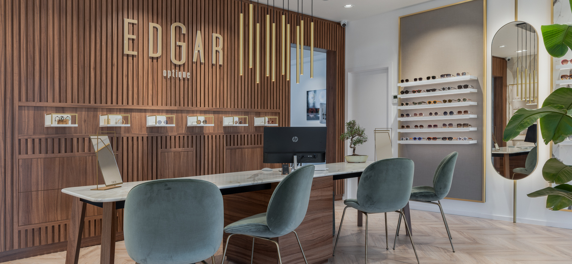 WSB Interieurbouw verzorgde realiseerde het ontwerp en de inrichting van Edgar Optiek in Waterloo. De eerste winkel in Edgar ElKazzi bevindt zich in de Europese buitenwijken van Brussel.