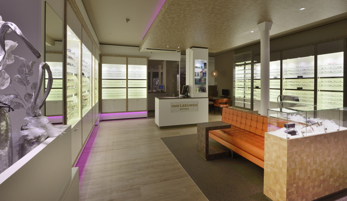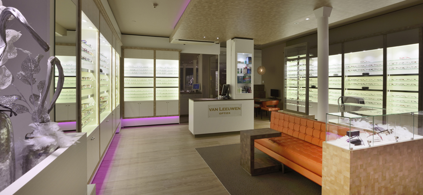 DNA Profiel van het ontwerp interieur optiekzaak: voor Harry van Leeuwen ontwikkelde Rick Blankenstijn van WSB Interieurbouw een persoonlijk ontwerp op 70m2. De sfeer is vrolijk, dynamisch, gezellig en professioneel tegelijk. De winkel is bedoeld voor iedereen met een grote en kleine portemonnee. De winkel is modern, maar pakkend gezellig met aandacht voor een ruimtelijke opzet van het ontwerp.