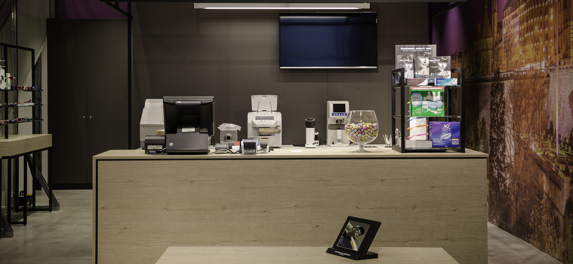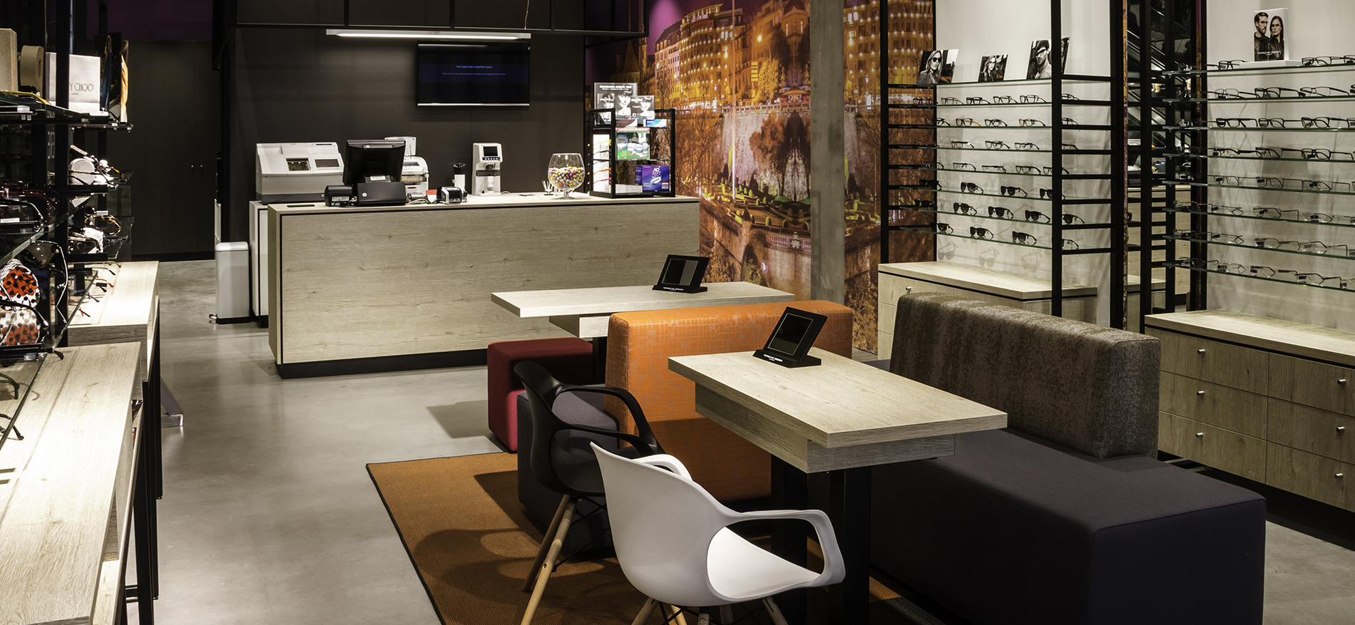 interieurinrichting opticien Agencement magasin Optique Plusminus