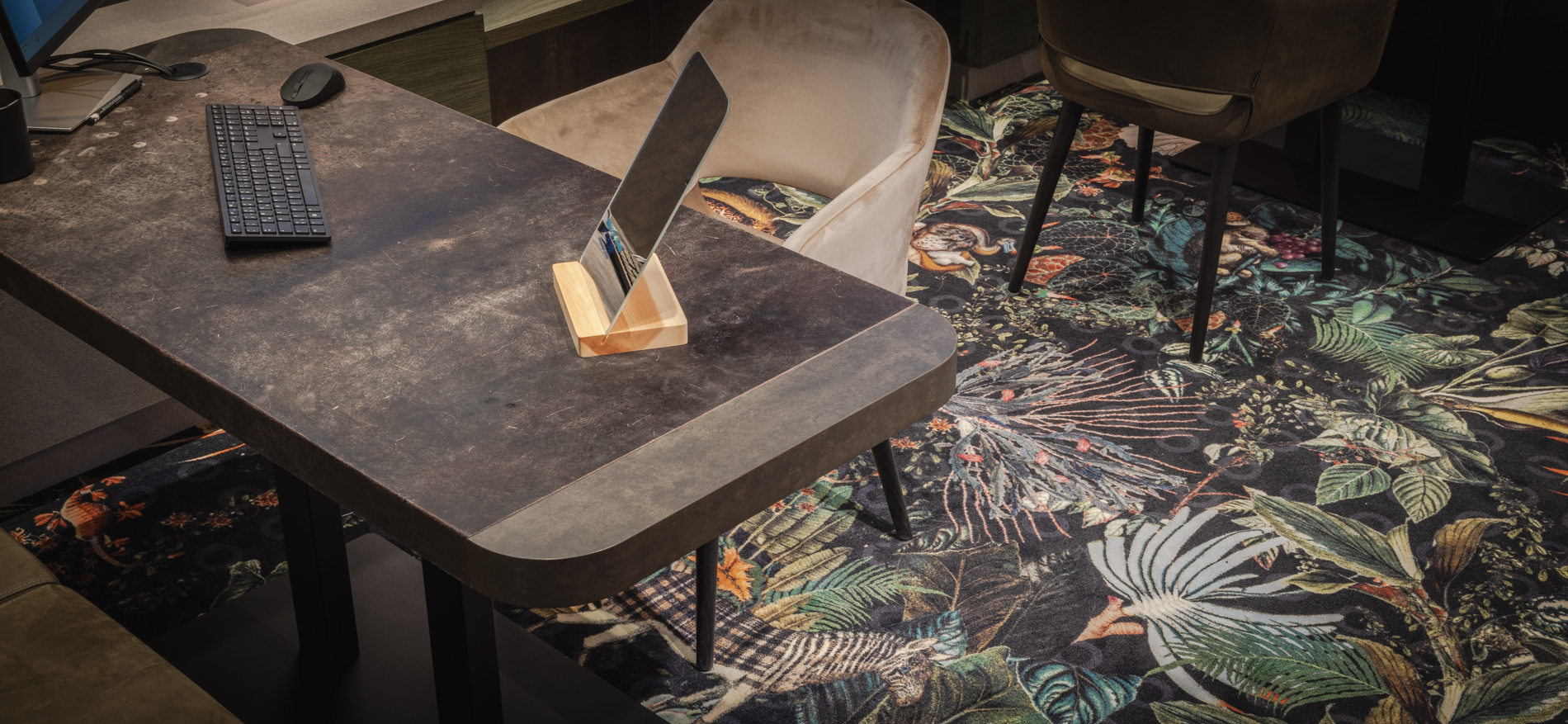 Door meerdere sferen in deze grootse winkel te maken wordt de klant nieuwsgierig gemaakt om door de hele winkel te lopen. Met name advies en verkoop in het verhoogde winkeldeel. In combinatie met het daglicht, warme donkere tonen en een prachtig kleed van Moooi een geweldige koopervaring!
