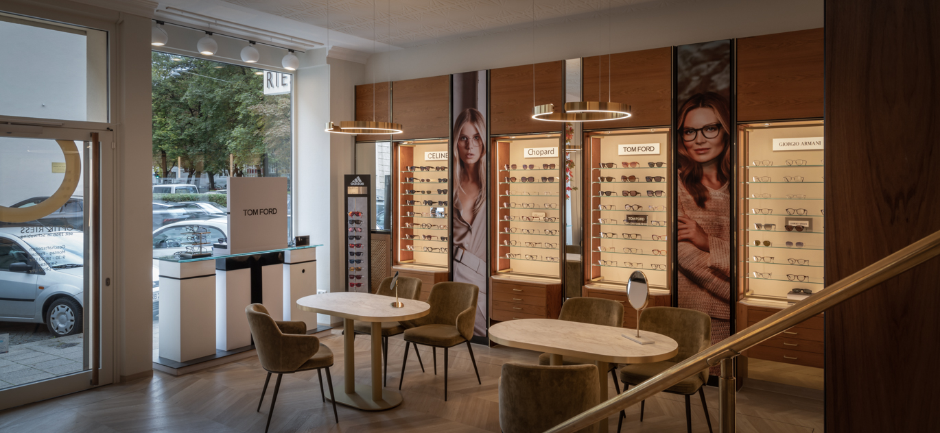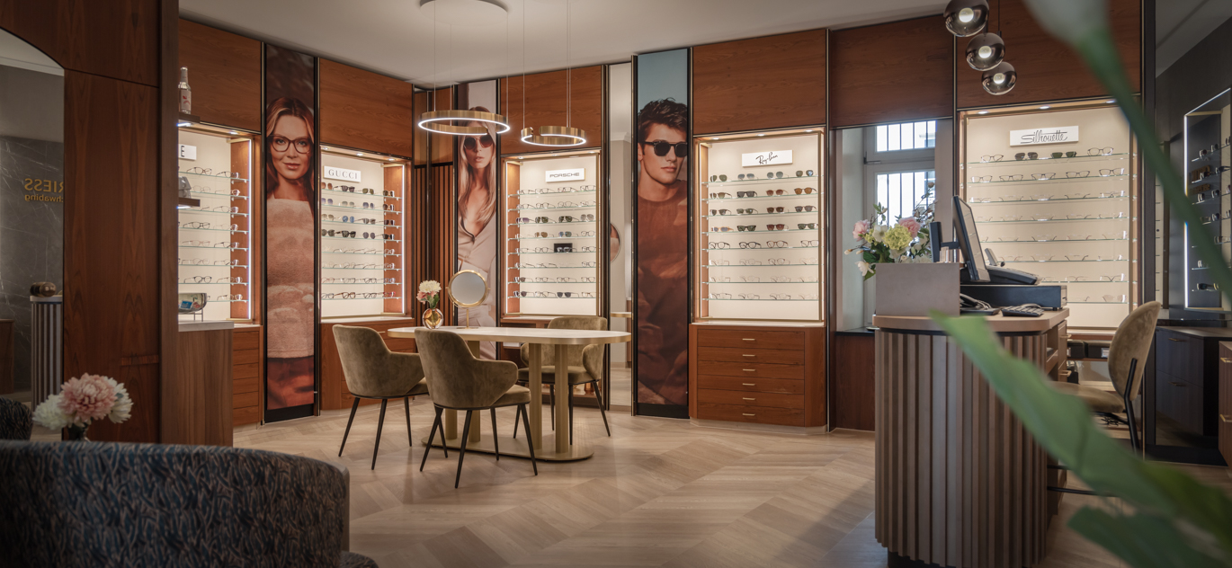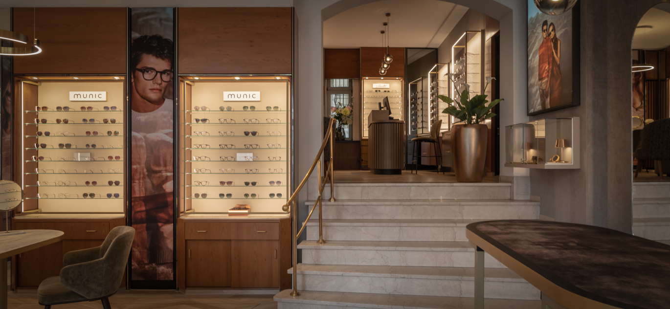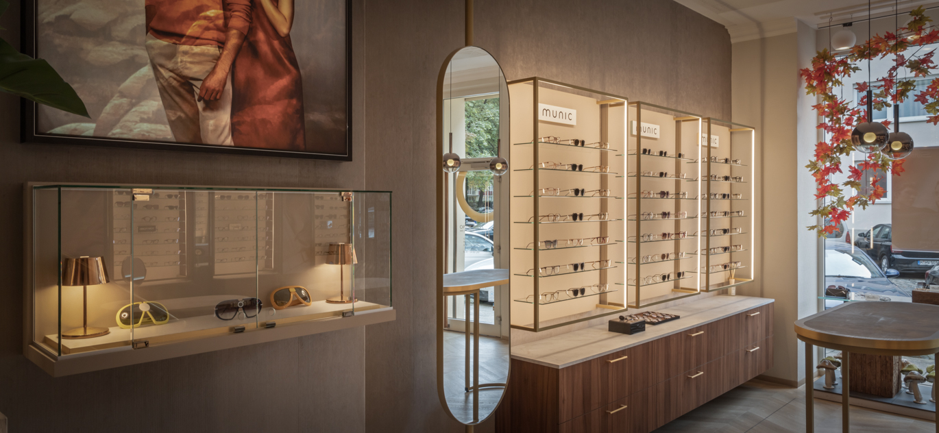 Simone Weideneder heeft in het prachtige München, in de wijk Schwabing, een schitterende optiekzaak met hoogwaardige merken, een loyale klantenkring en een team van deskundige opticiens. Het oude interieur van de optiekzaak was stijlvol, maar inmiddels gedateerd. Er was behoefte aan een grondige restyling van de optiekzaak, wat Simone deed besluiten om de interieurarchitecten van WSB Design uit te nodigen voor een stijlvolle renovatie van de optiekzaak.