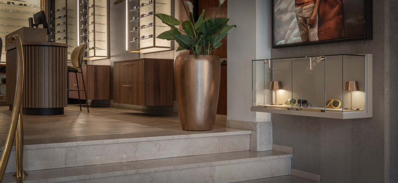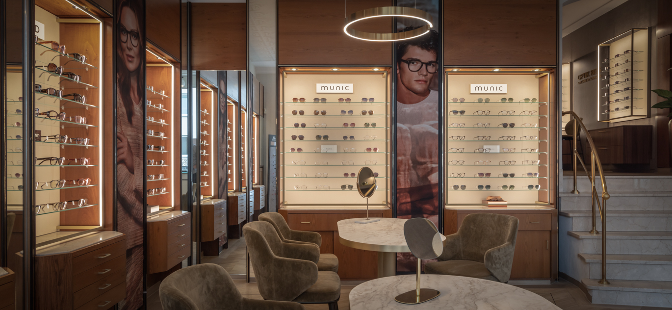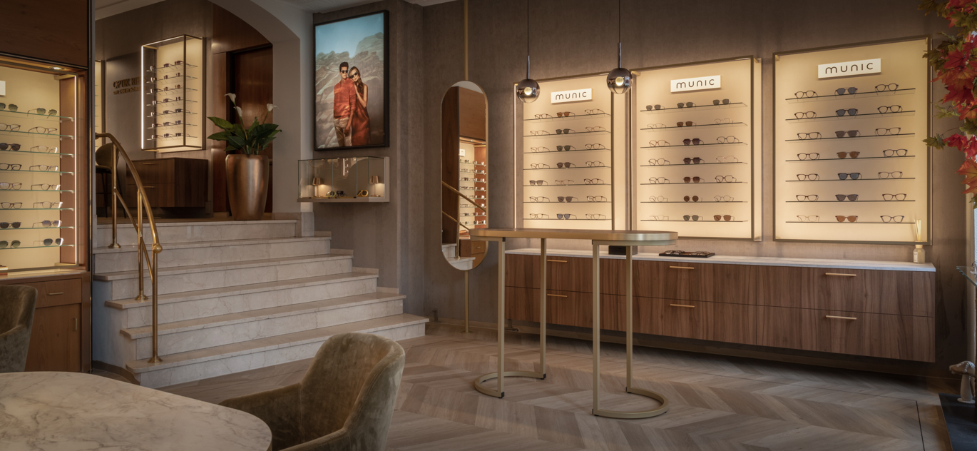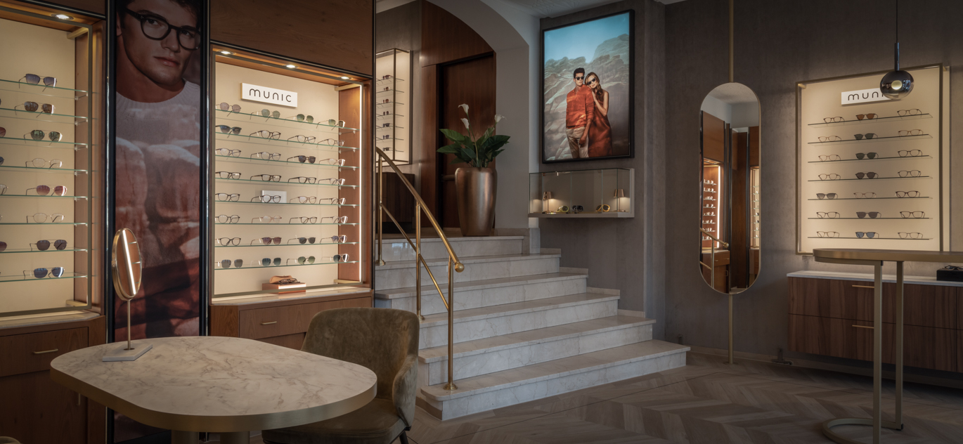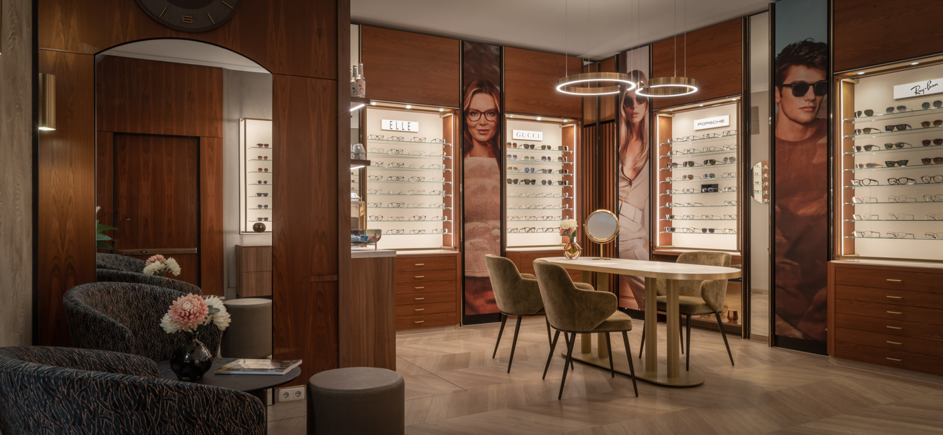 Simone Weideneder heeft in het prachtige München, in de wijk Schwabing, een schitterende optiekzaak met hoogwaardige merken, een loyale klantenkring en een team van deskundige opticiens. Het oude interieur van de optiekzaak was stijlvol, maar inmiddels gedateerd. Er was behoefte aan een grondige restyling van de optiekzaak, wat Simone deed besluiten om de interieurarchitecten van WSB Design uit te nodigen voor een stijlvolle renovatie van de optiekzaak.